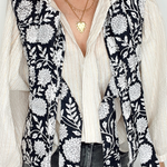 The Lenny Quilted Bow Gilet in Black & White is a limited-edition layer with playful detailing and a cropped, boxy silhouette. Crafted from hand-printed cotton remnant cloth with soft cotton wadding, it delivers light warmth, texture and timeless charm—perfect for layering across seasons.