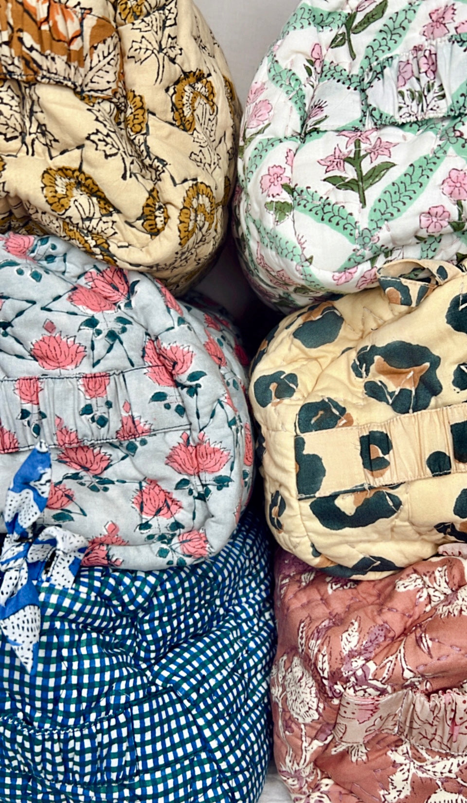 Crafted by artisanal makers in India from 100% organic cotton outer and lining with 100% cotton internal wadding.