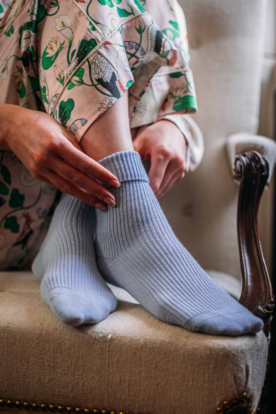 The sumptuously soft Bed Socks in Powder Blue, designed by Rosie Sugden and knitted from cashmere in their family-run Scottish mill, are a real treat for your feet. Individually linked at the toe, to ensure ultimate comfort and fit, with a small percentage of nylon to ensure longer wear, they are the ultimate winter warmer.