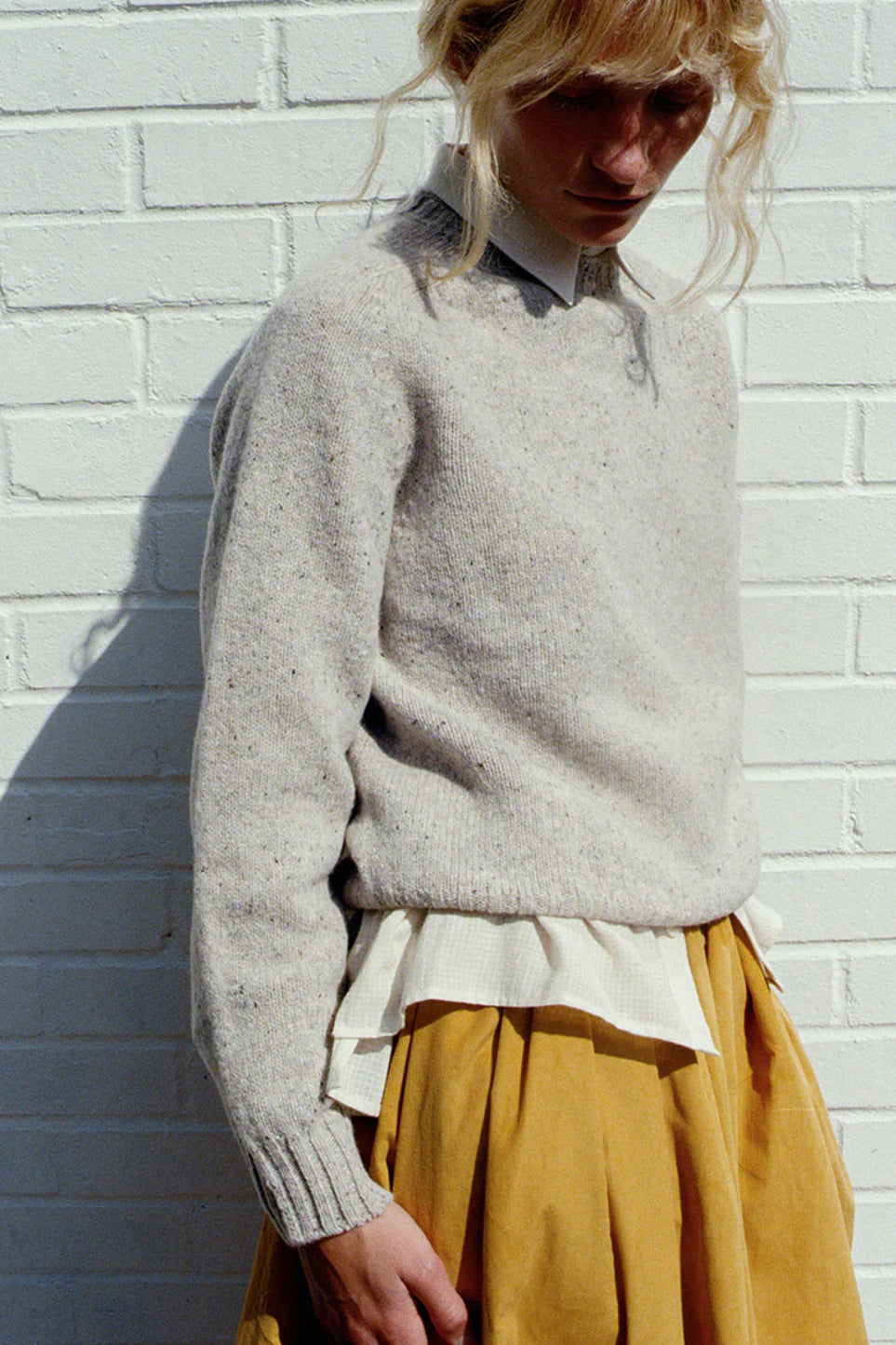 Alpaca Blend Puff Sleeve Cardigan in Green