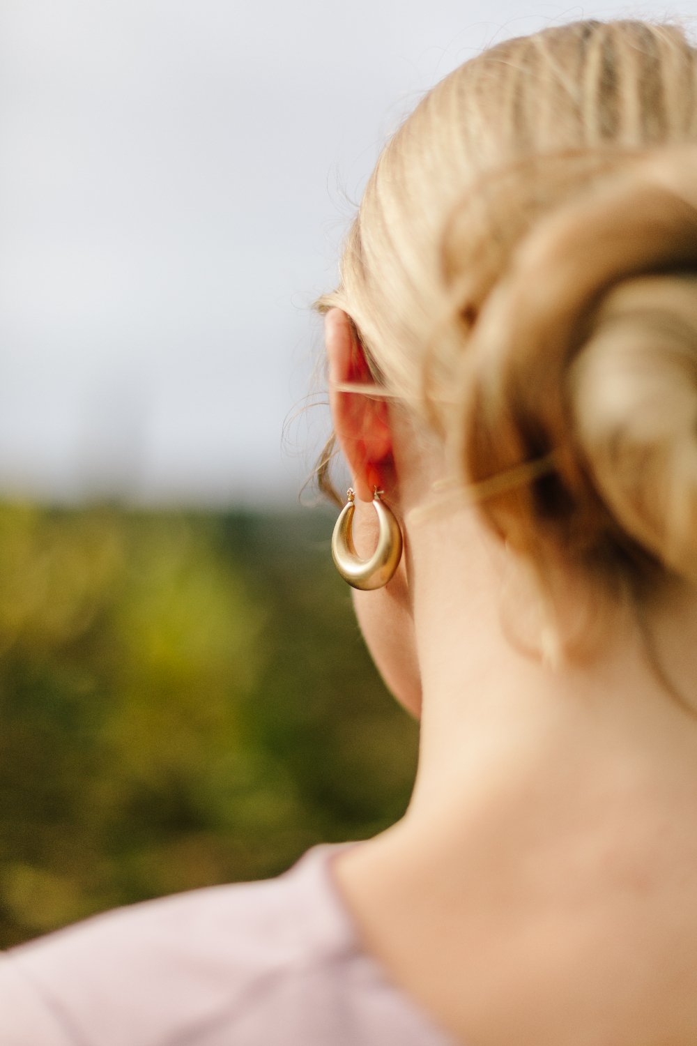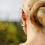 This drop hoop shape in a classic matte brass finish will give any outfit a lift.