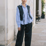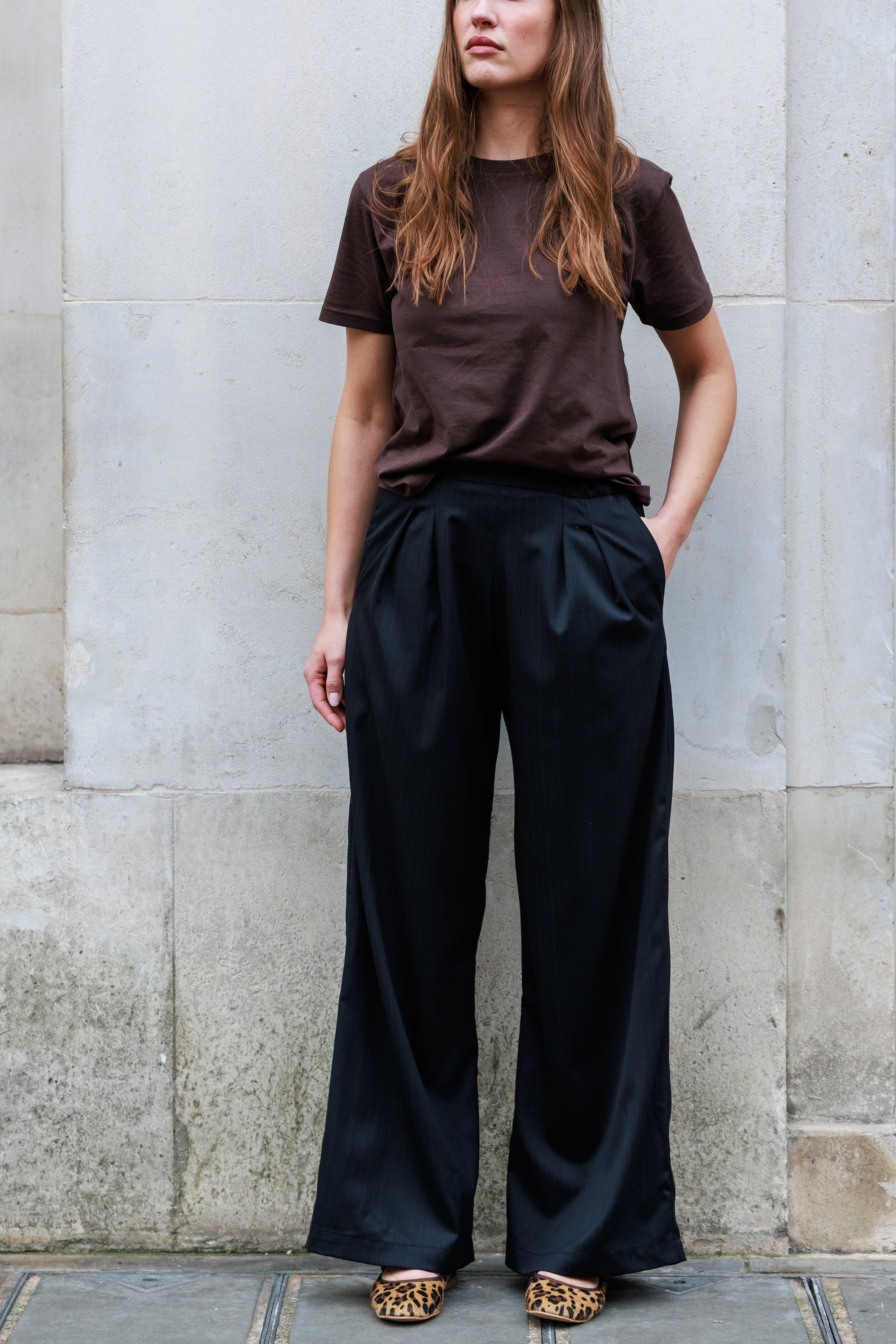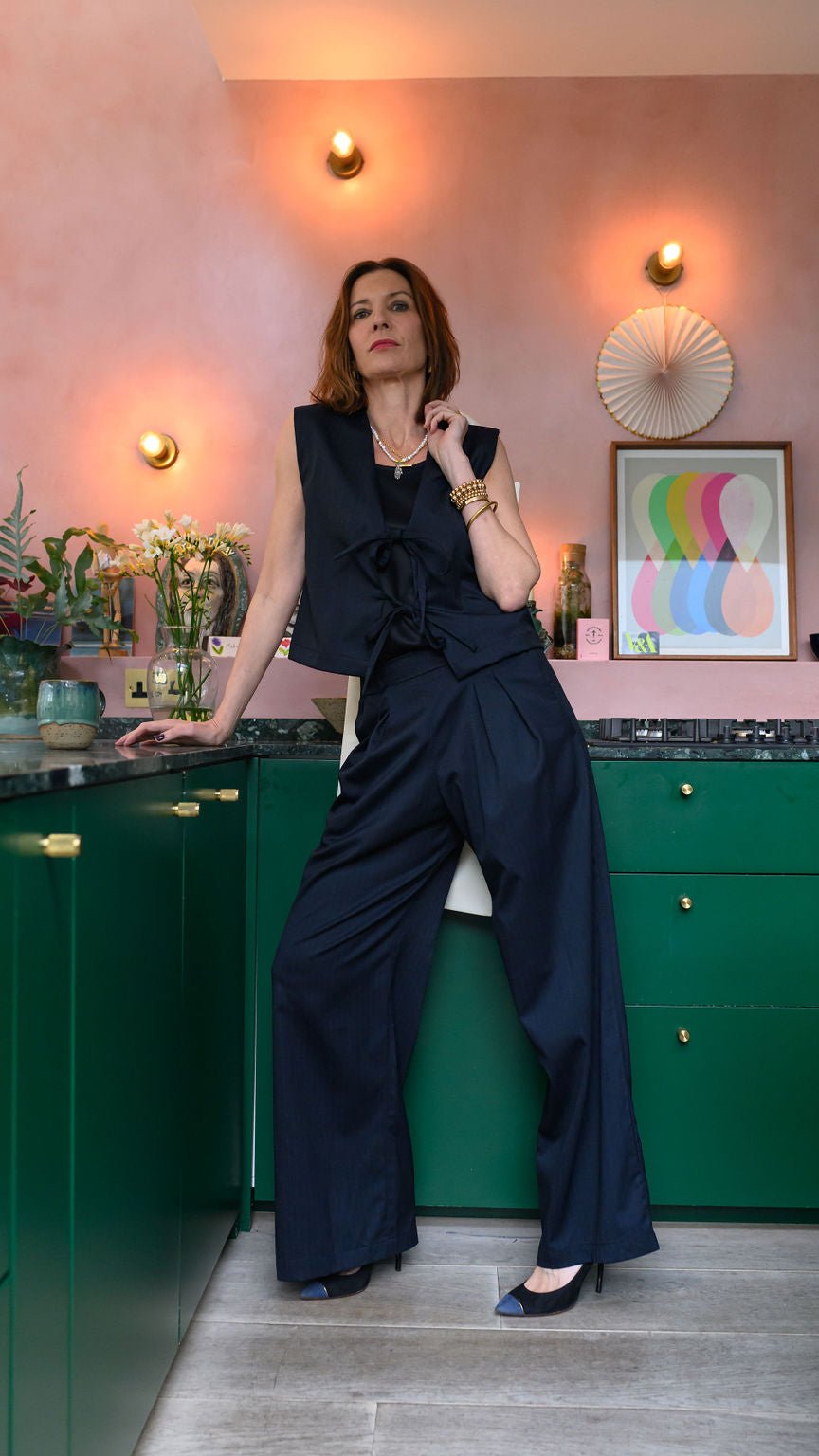 Wide legged, super flattering wool trousers that are as easy to wear as they are comfortable. The Jerome wool trousers are made in London using luxury British wool fabric by renowned textile manufacturer Alfred Moon. These tailored trousers look suited and pulled together, yet the relaxed elasticated waistband makes them as comfortable as loungewear. The wide leg cut and front pleats give them a beautiful silhouette.