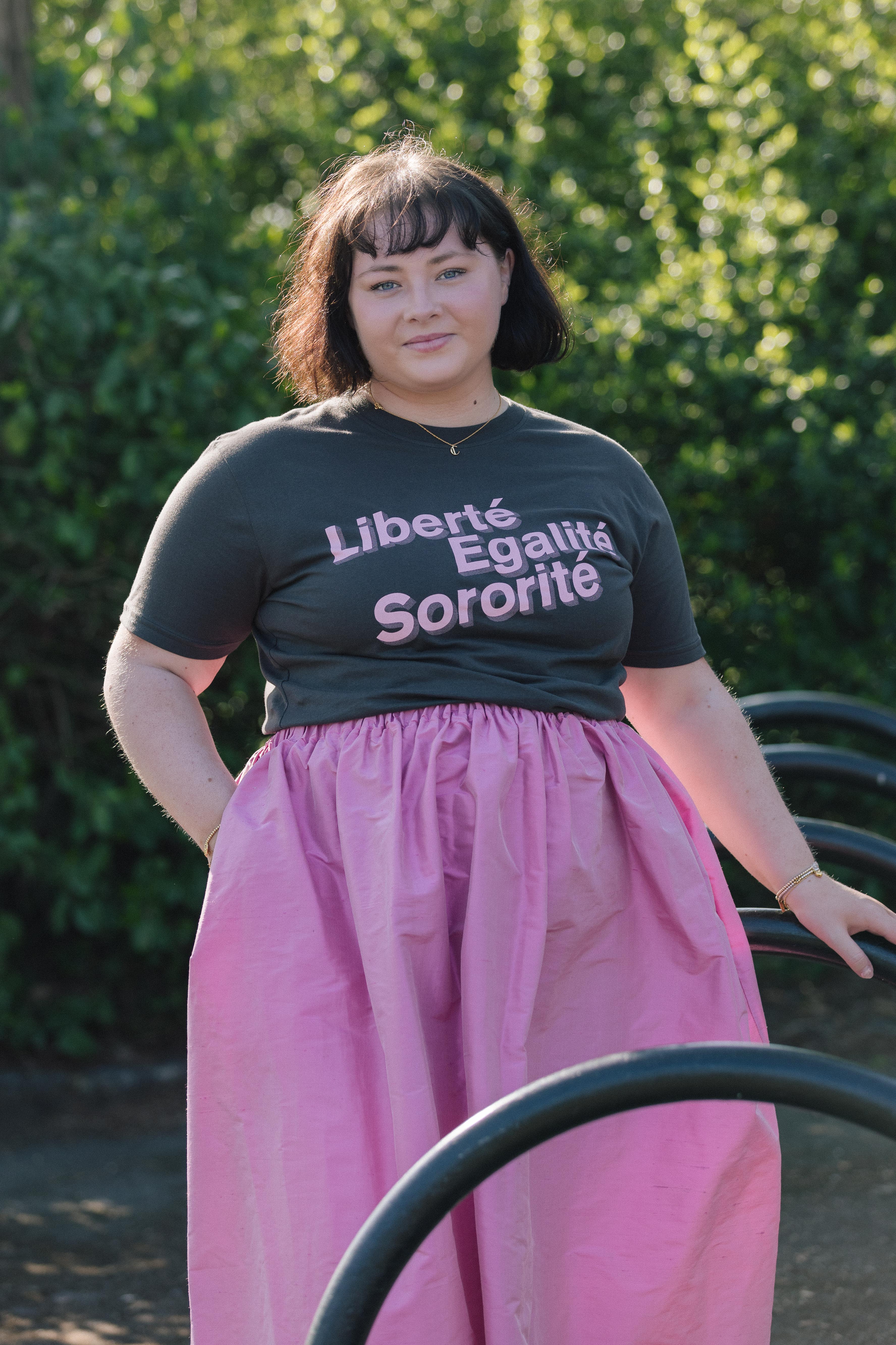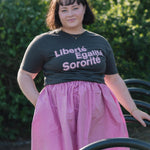 Emblazoned with "Liberté Égalité Sororité," a phrase rooted in the women’s liberation movement of 1970s Paris, this T-shirt is a timeless reminder of solidarity and strength.