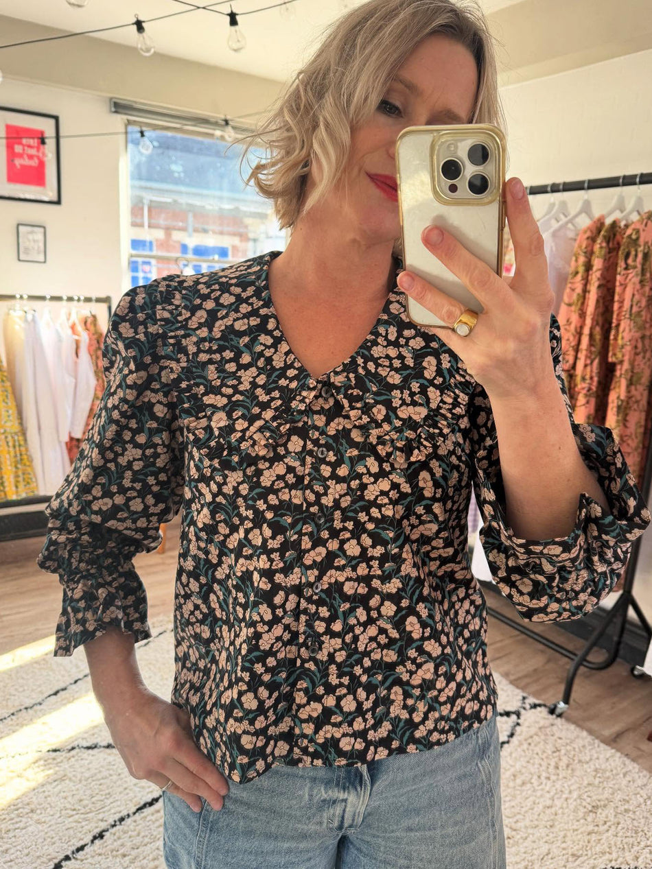 The Luna Navy Floral Blouse by the well worn combines vintage-inspired style with modern ease. Featuring a delicate floral print, oversized collar and flattering neckline, it’s crafted from sustainable deadstock cotton for a timeless yet conscious wardrobe addition.