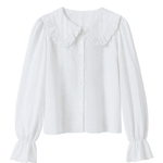 As an embroidered yoke blouse, the Luna boasts a romantic ruffle yoke and gathered bishop sleeves. The slightly boxy silhouette flatters every shape, and the classic button-through front adds timeless elegance.