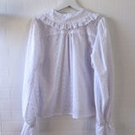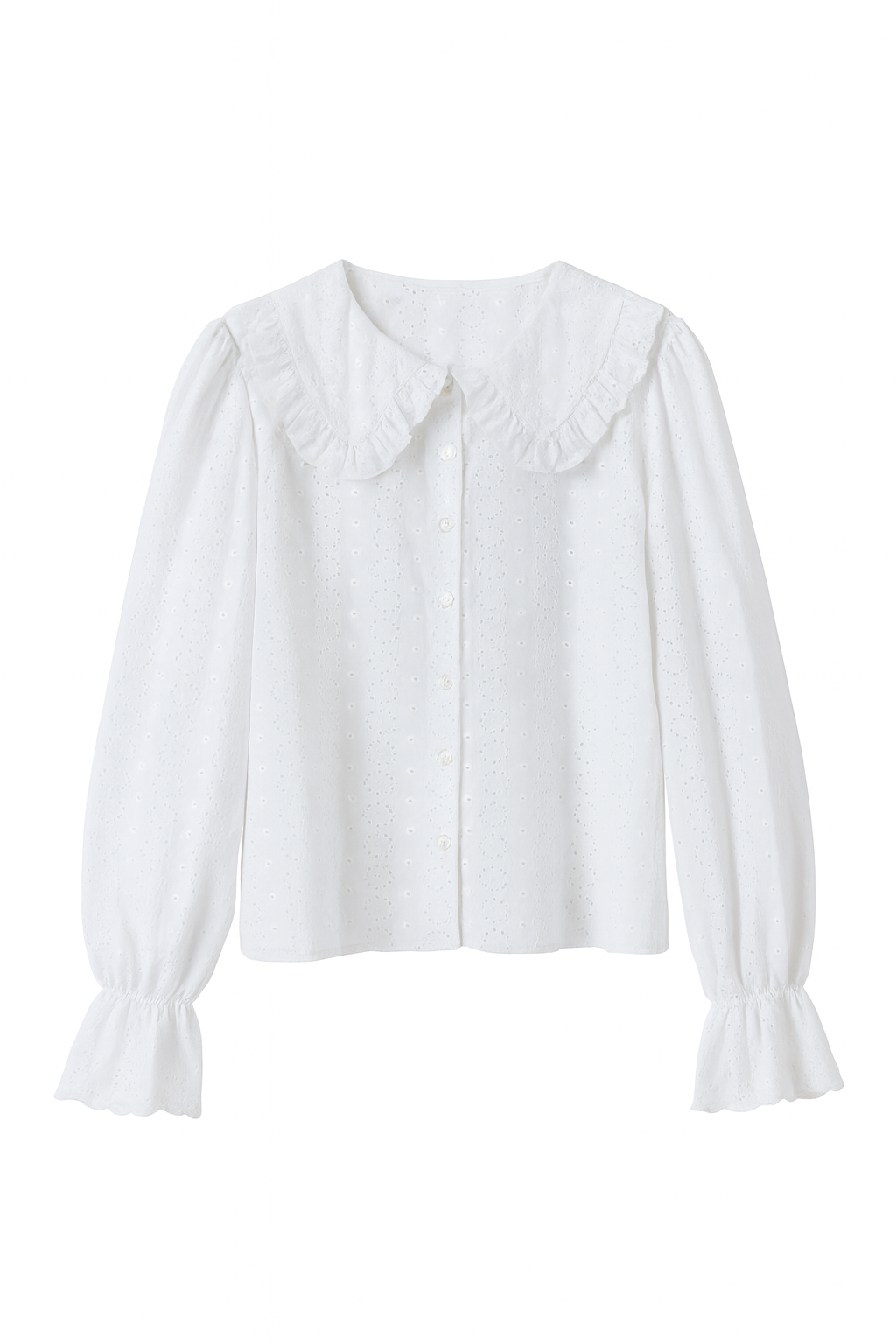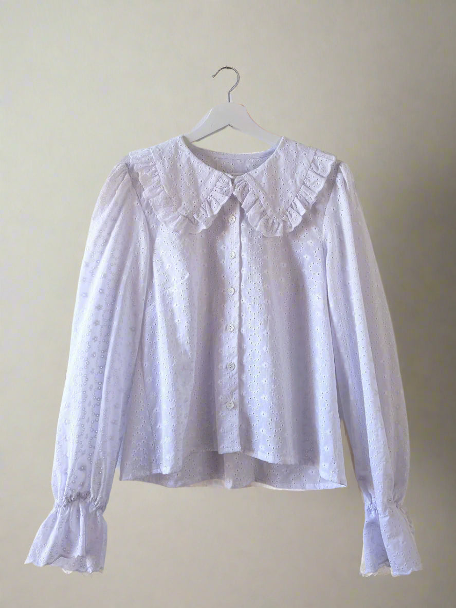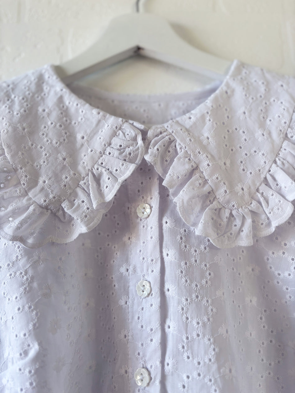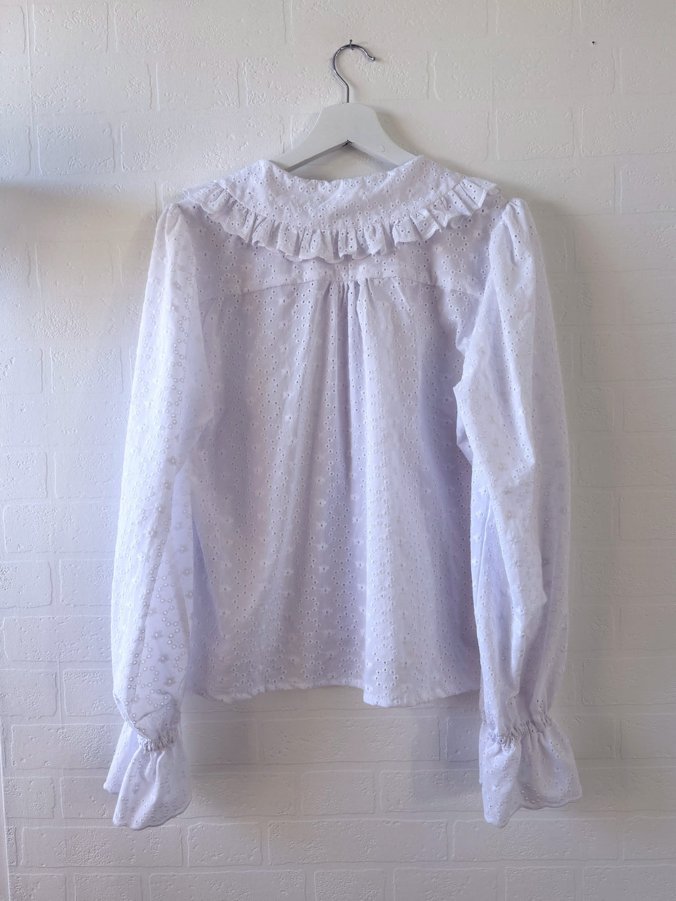 The Luna Broderie Blouse by The Well Worn is a broderie blouse crafted from sustainable deadstock broderie cotton in crisp white.