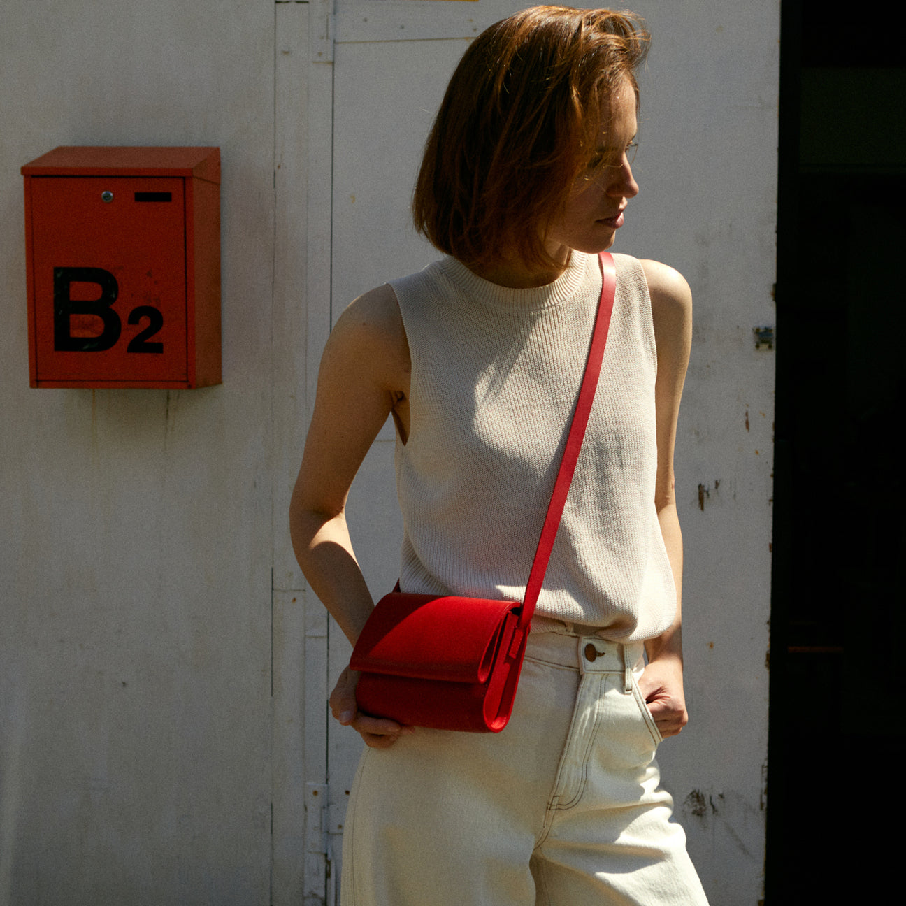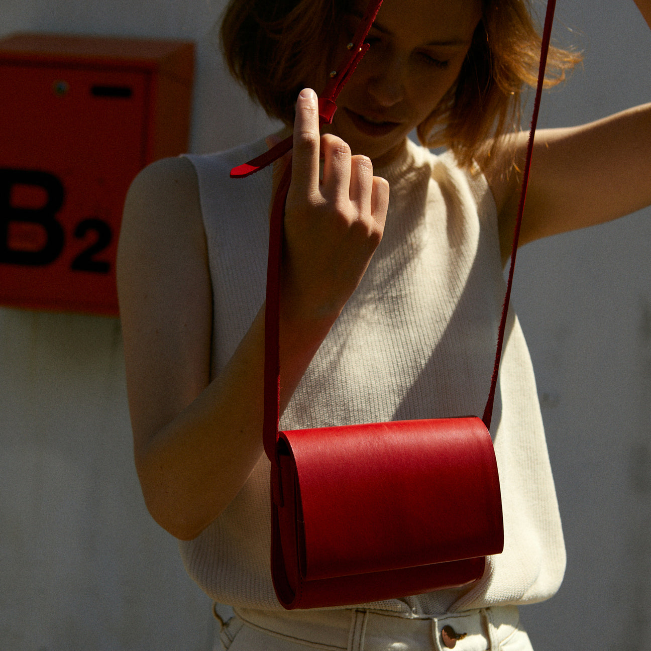 The Mini Leather Bag from LPOL is a compact classic with refined functionality. Designed for those who value thoughtful design, this red leather handbag is made from soft nubuck and leather using a chrome-free tanning process — marrying style with sustainability.