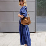 The vegetable-tanned leather shoulder strap is on-trend and easy to wear.