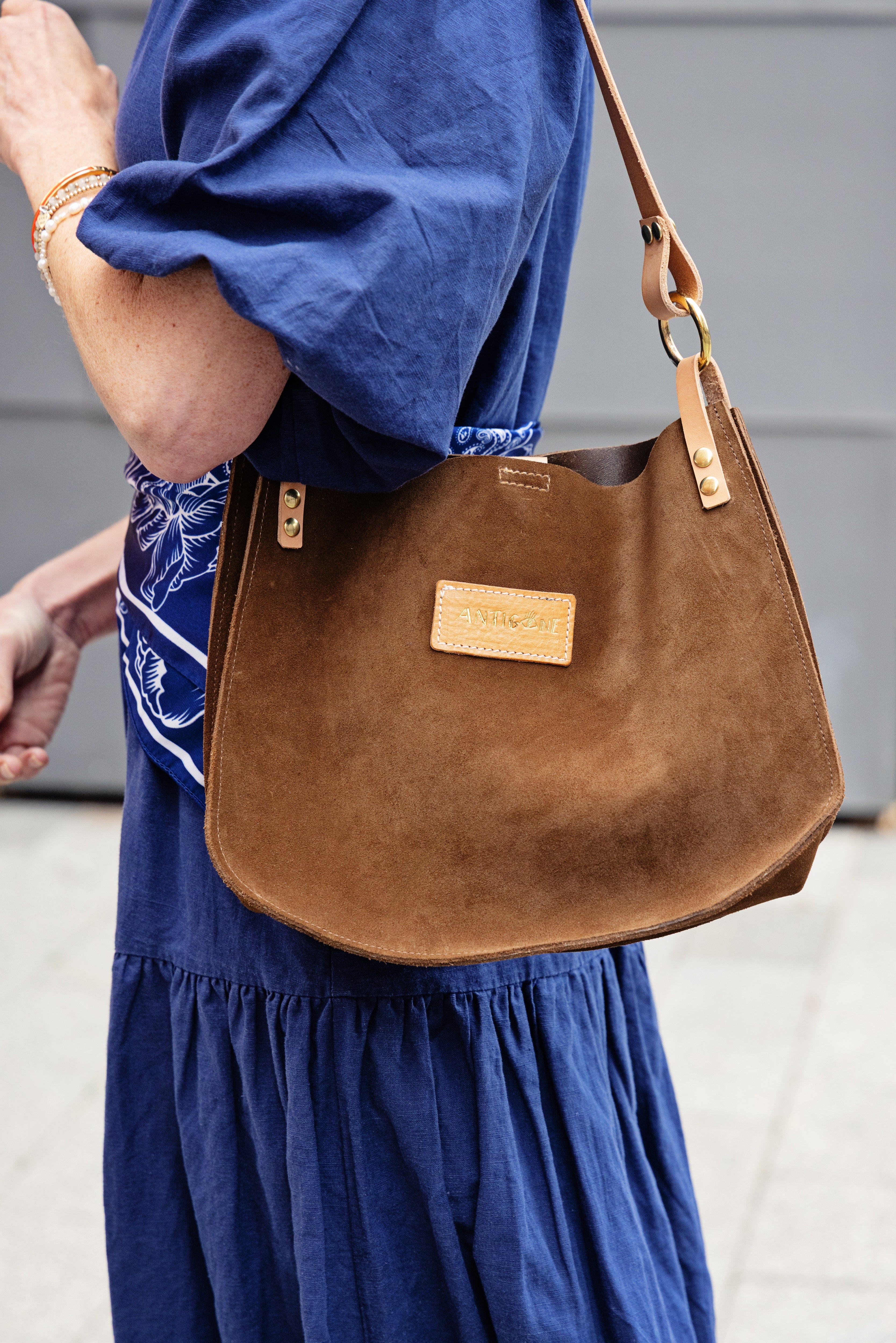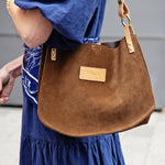 The new ‘Helena’ luxury suede hobo bag , is handmade in our East London atelier from English suede overstocks, part of our zero waste luxury philosophy.