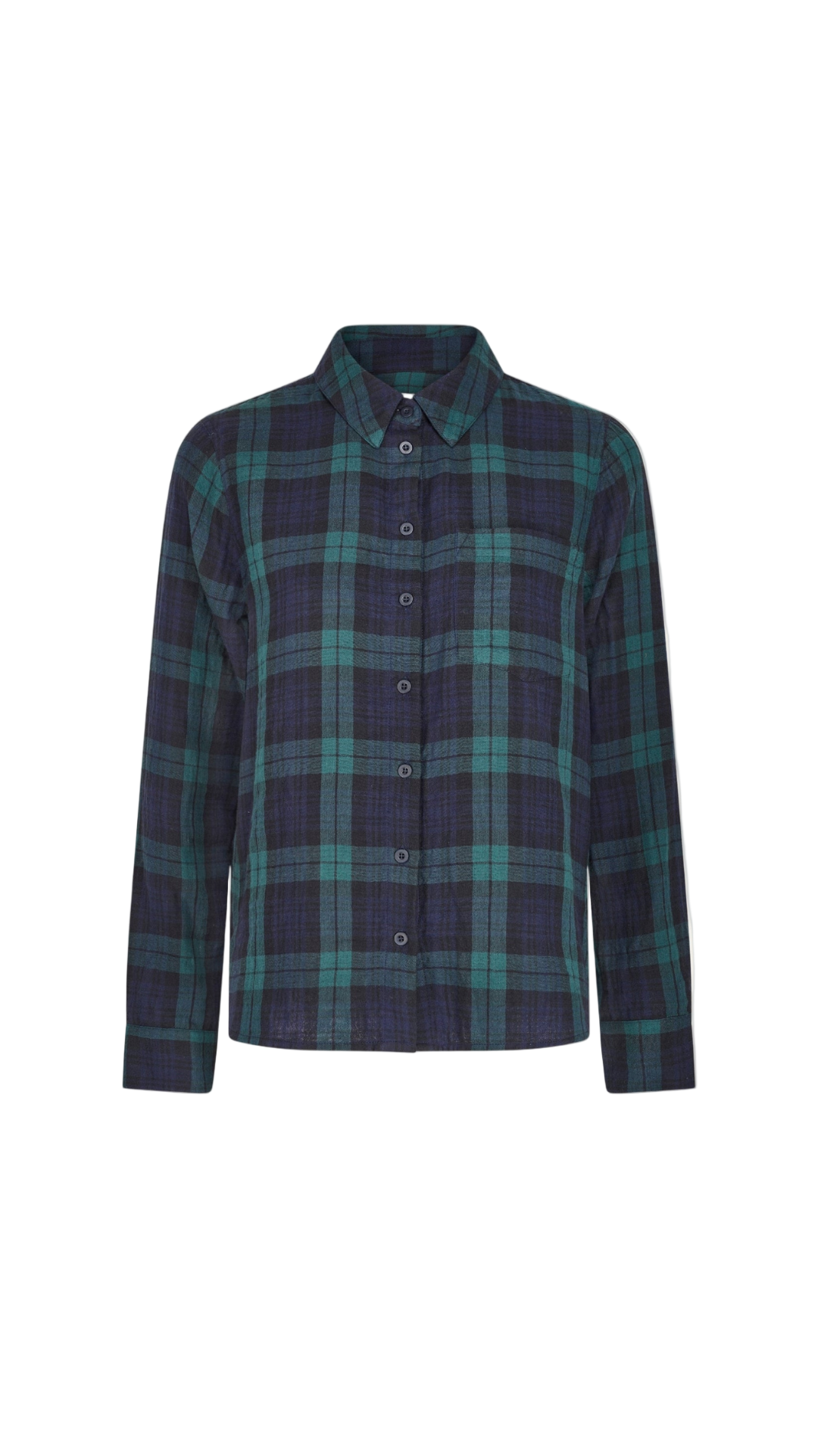 The Mel Organic Cotton Checked Shirt in Navy and Green is a versatile wardrobe staple, made from soft double cloth for comfort and ease. A relaxed fit button-down shirt with a timeless check design, perfect for everyday wear.