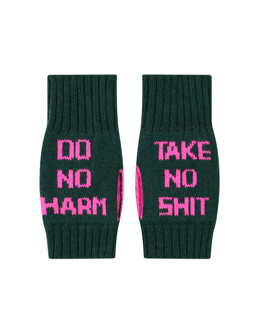 Do No Harm Take No Shit Wrist Warmers in Evergreen