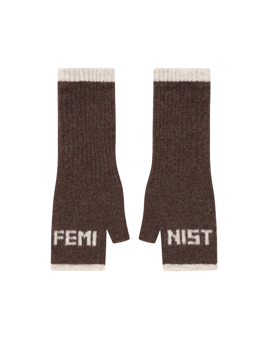 Feminist Fingerless Mittens in Cocoa & Linen
