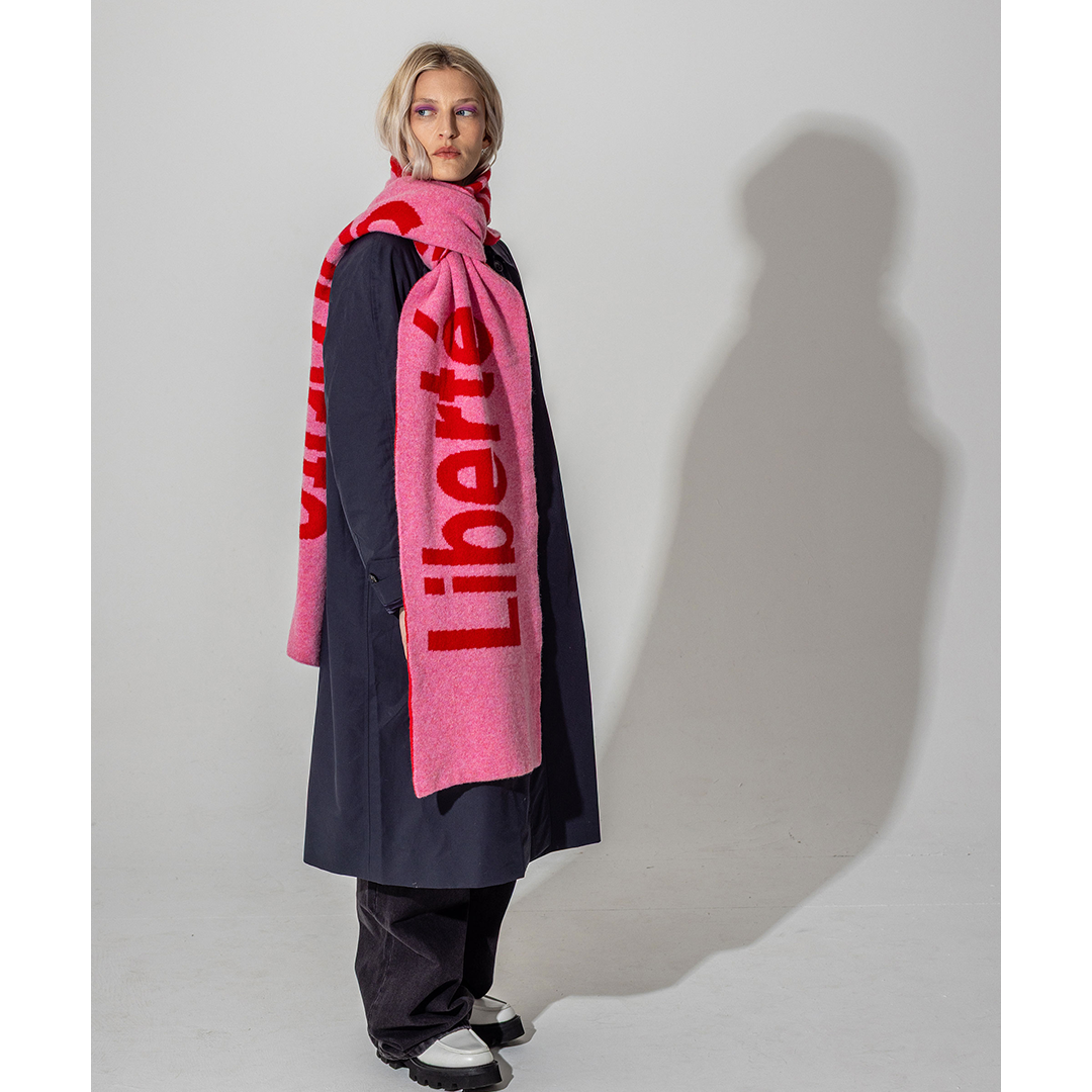Liberte, Egalite, Sororite Lambswool Scarf in French Rose & Rouge