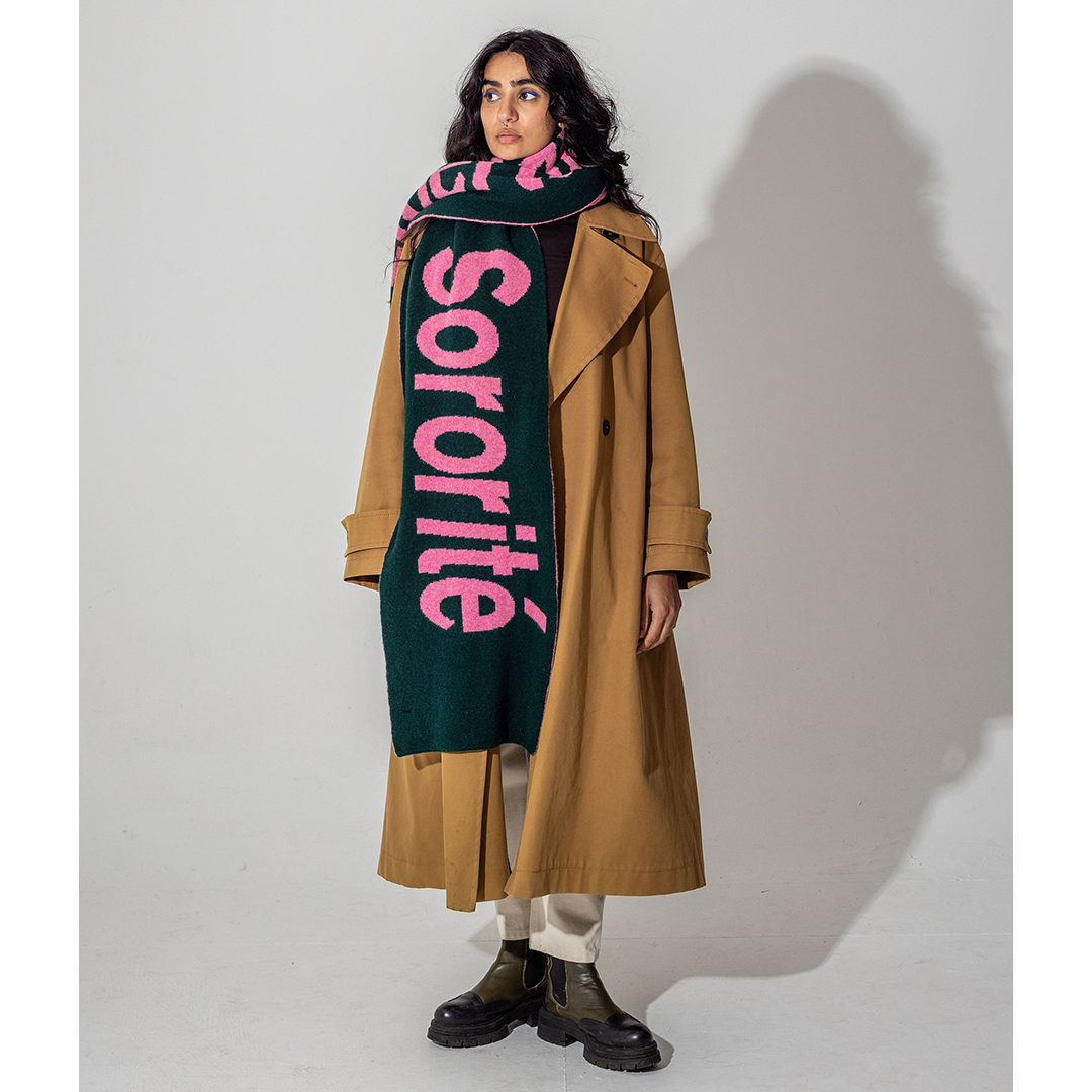 Liberte, Egalite, Sororite Lambswool Scarf in Forest Green & French Rose