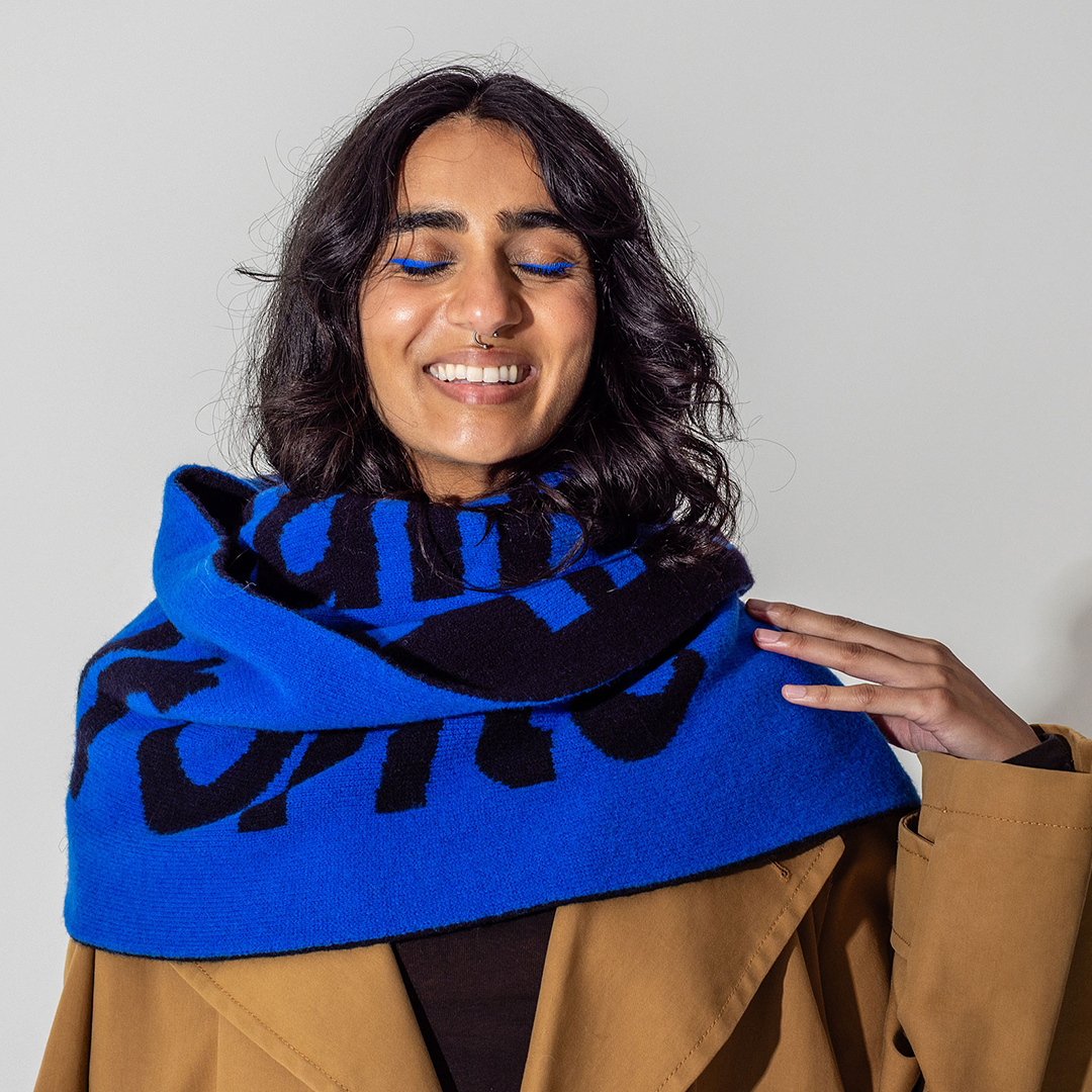 Liberte, Egalite, Sororite Lambswool Scarf in Klein & Navy