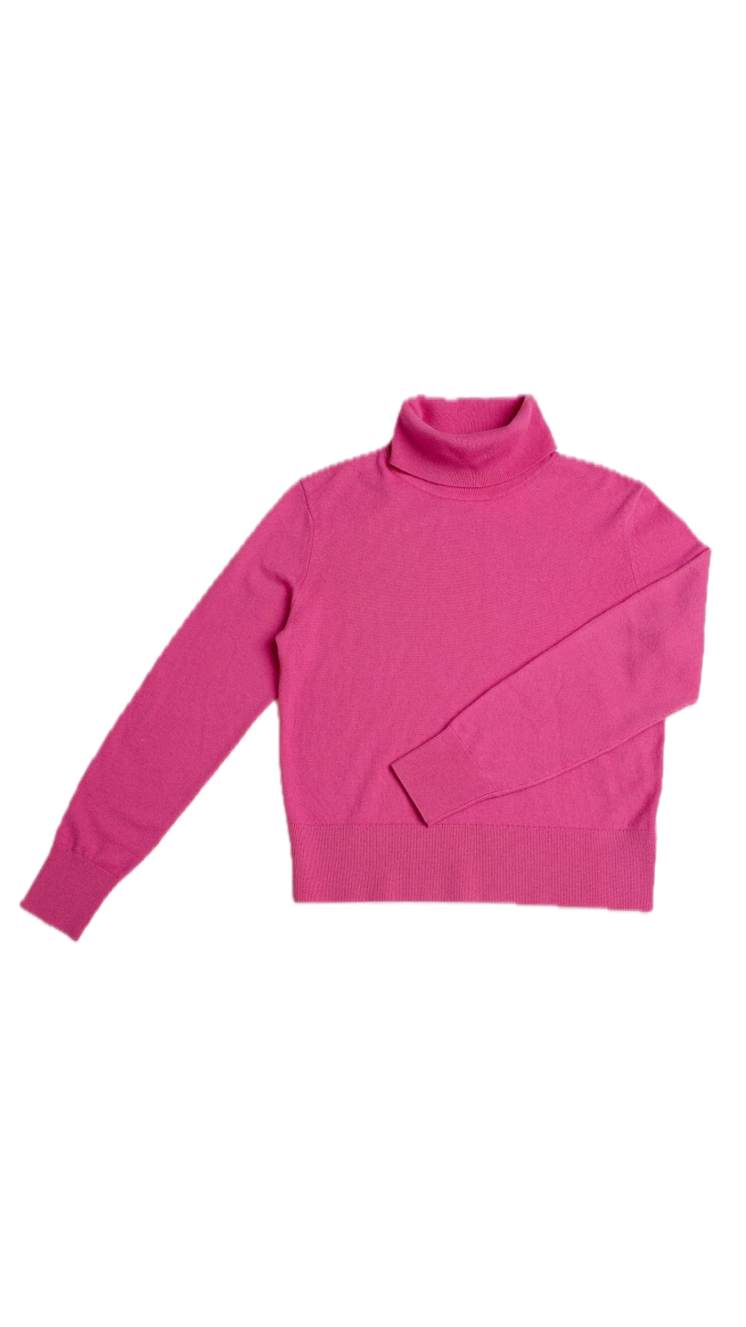 The Anne Polo Neck Cropped Jumper in Pink by Porridge Knitwear channels vintage charm with a modern twist. Crafted in a soft peonie pink wool-cashmere blend, it's elegant, feminine, and effortlessly wearable.