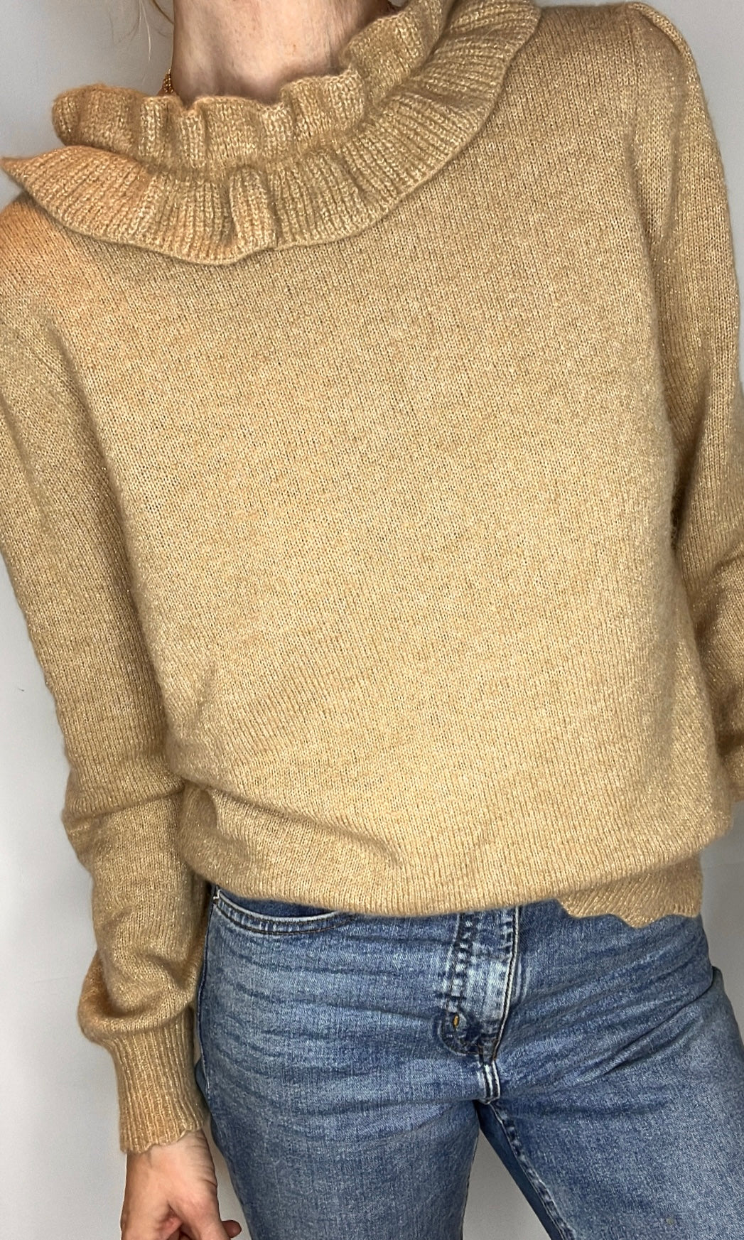 The Luci Jumper in Camel Sparkle by 46 Stitch combines timeless elegance with a hint of shimmer. This soft and subtly sparkling knit brings warmth and sophistication to your winter wardrobe, designed for effortless everyday style.
