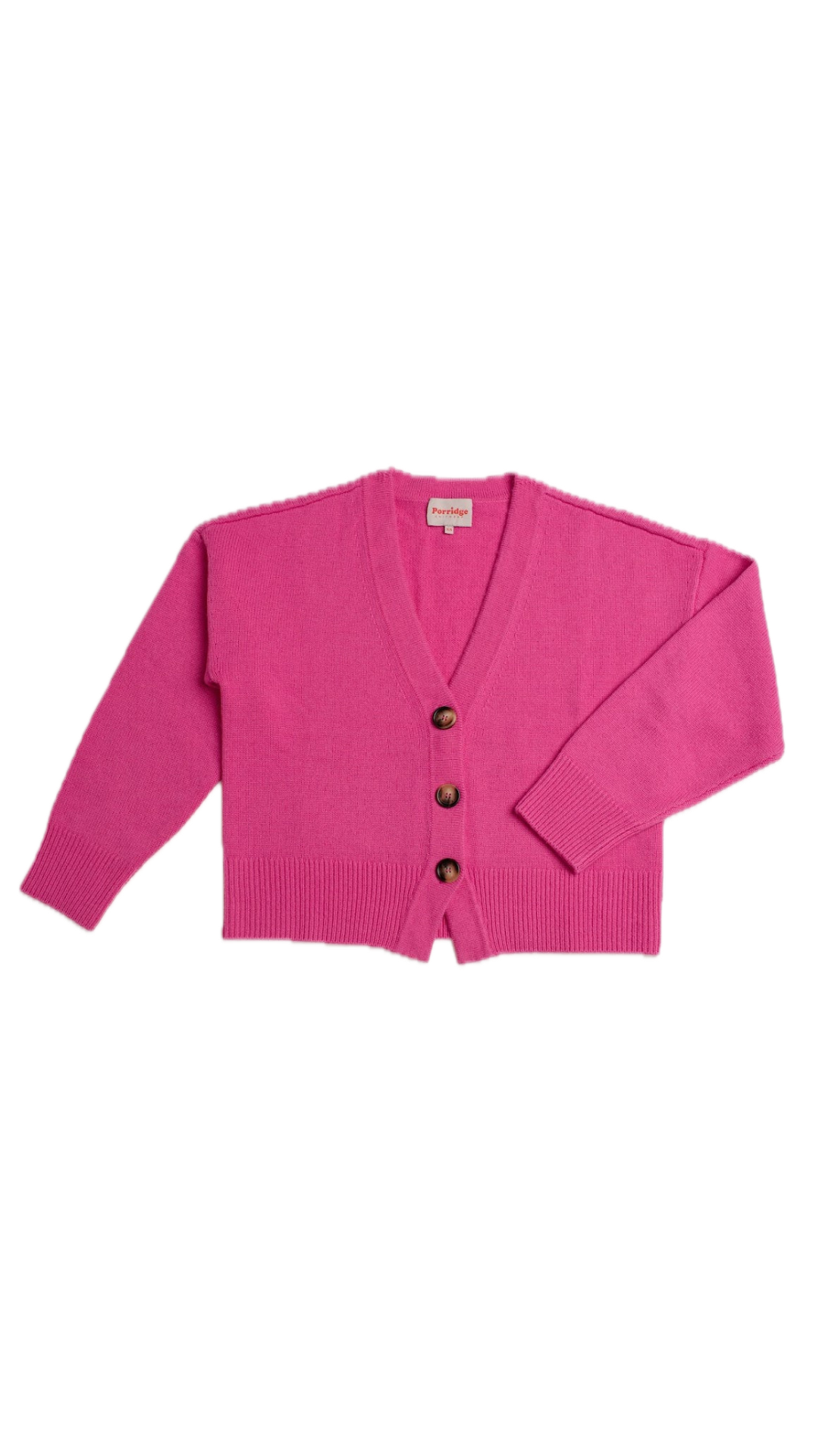 The Lucy V-Neck Cropped Cardigan in Pink by Porridge Knitwear adds a playful yet refined touch to your knitwear collection. Crafted from a luxurious wool-cashmere blend, it offers warmth and softness in a flattering cropped silhouette.