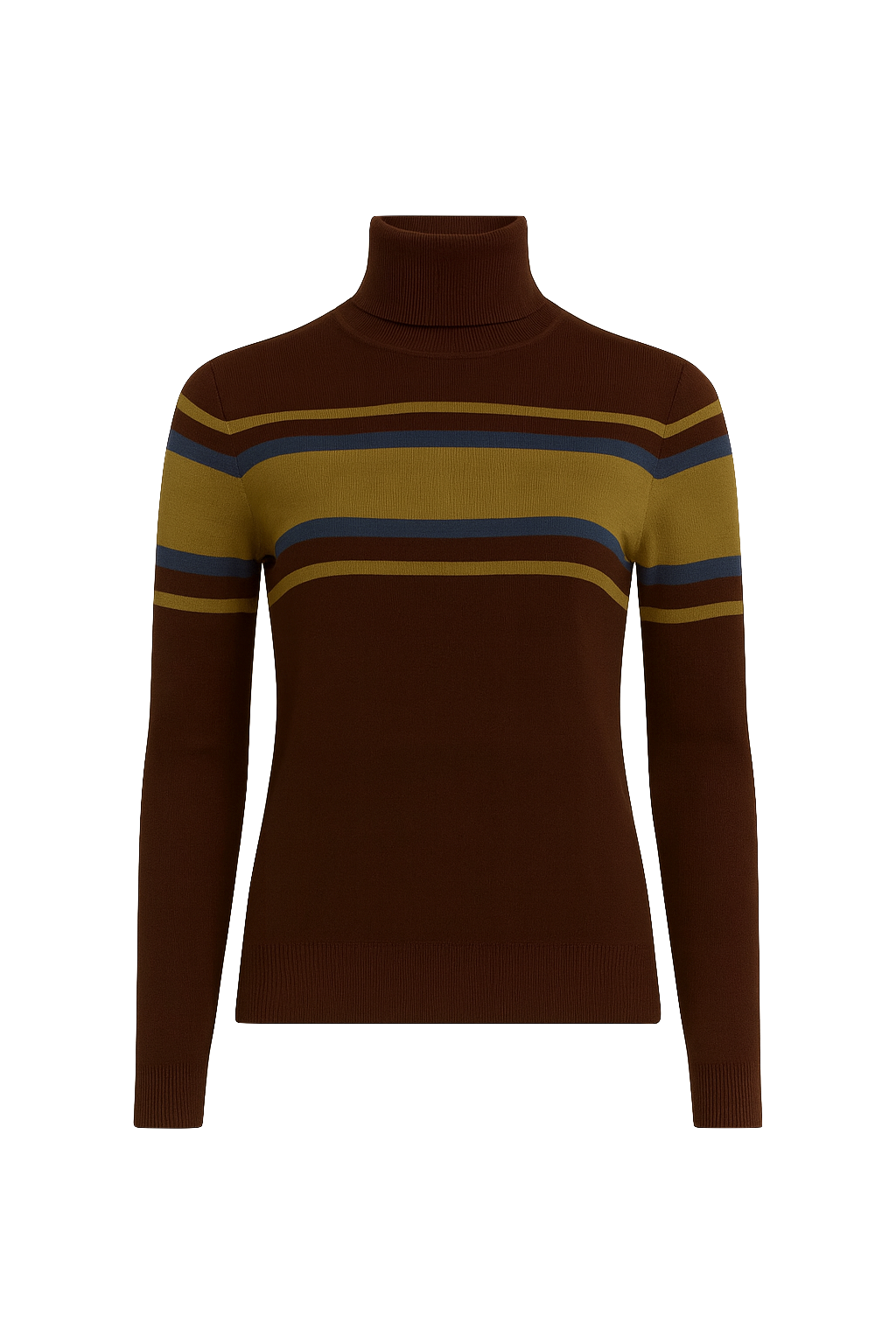 Cashmere Mix High Neck Jumper in Brown & Khaki Stripe