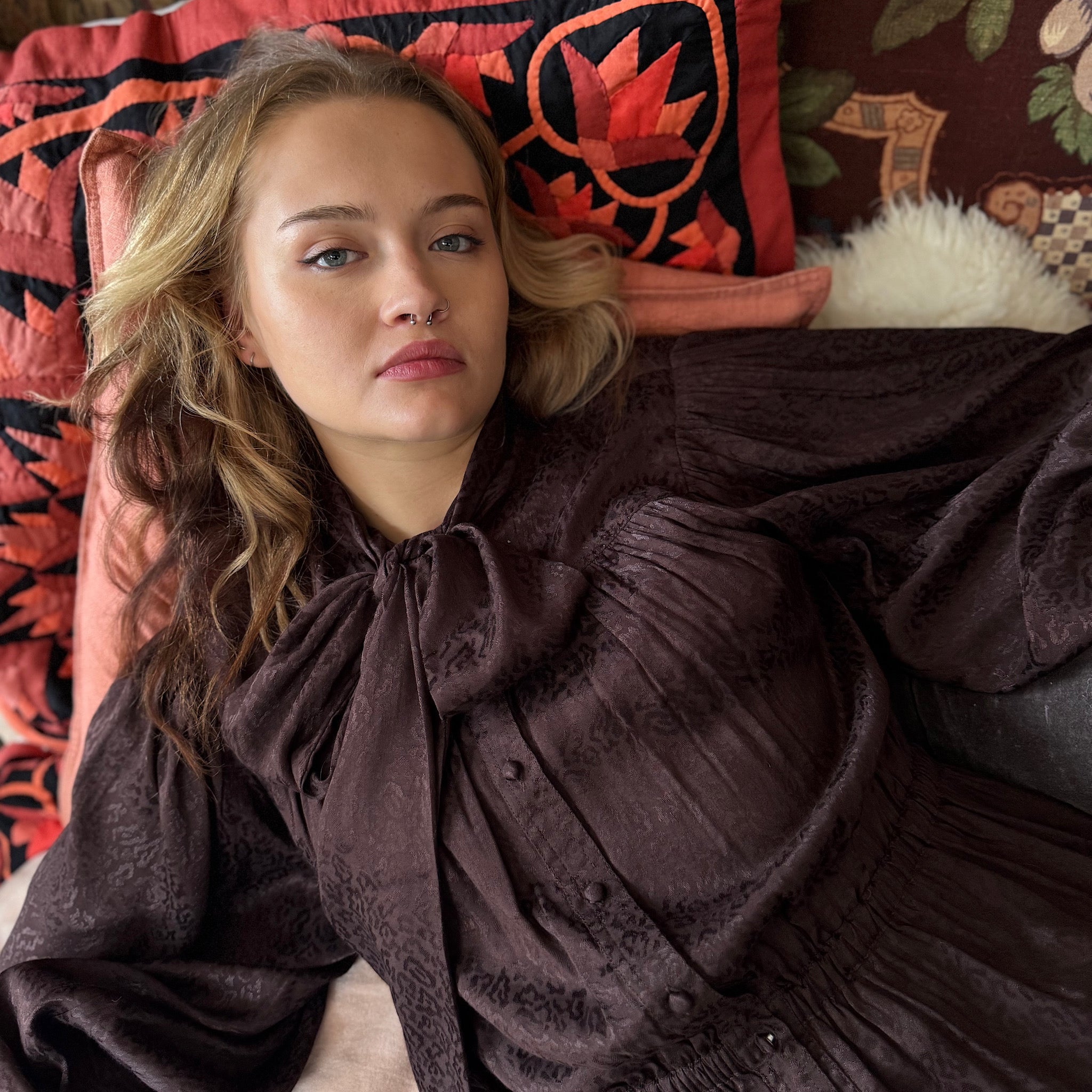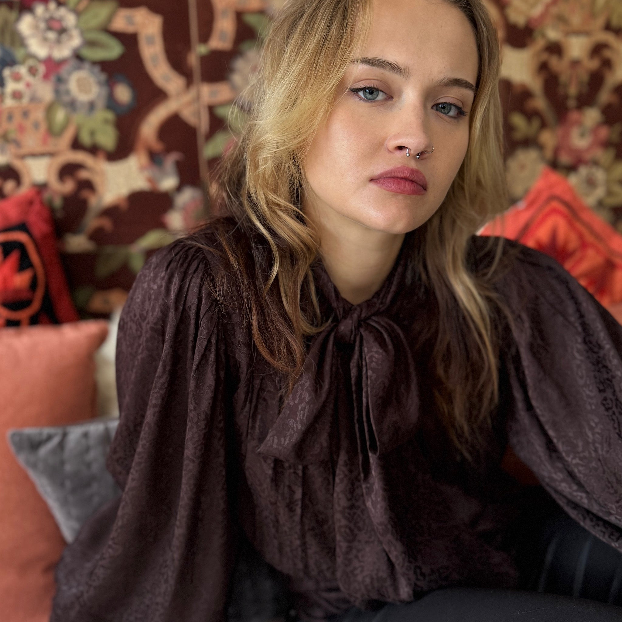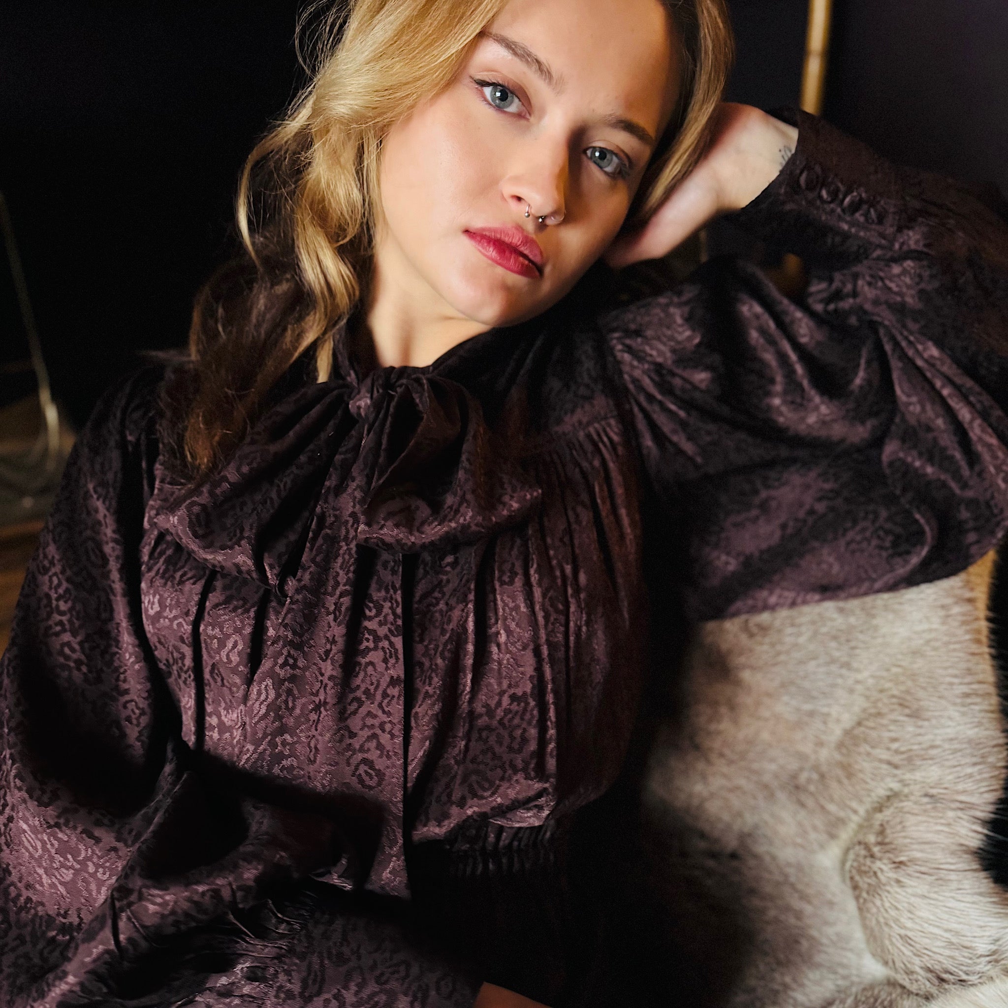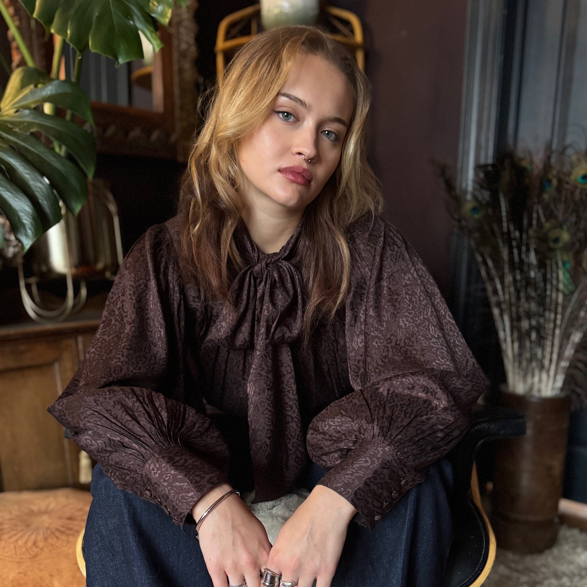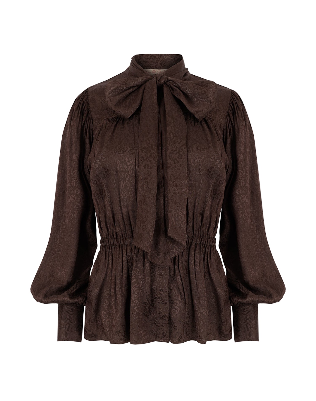 Delphi Leopard Print Satin Pussy Bow Satin Blouse