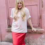With a hidden elastic inside the waist band the skirt is easy to pull on, comfortable to wear and will become a well loved wardrobe staple, adored for the incredibly flattering fit.