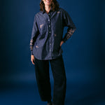 Wear it on its own, layered over a tee, or open as a light jacket. The embroidery and fluid denim lend it a distinctive look that's both timeless and modern - ideal for transitioning through the seasons.