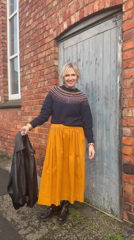 Our collections are curated from independent British designers who use sustainable fabrics such as organic cotton, recycled fibres, linen and British wool. Each piece is designed for timeless style and made to last, reflecting our commitment to slow fashion.