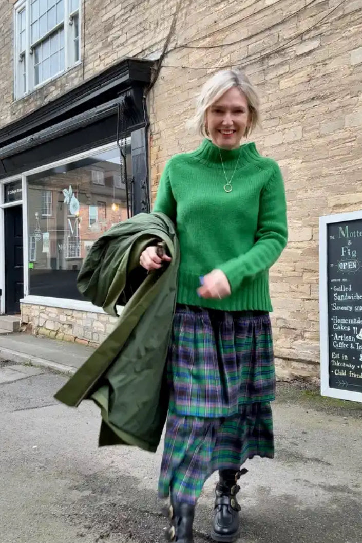 Chunky Swing Sweater with Split Hem in Bright Green