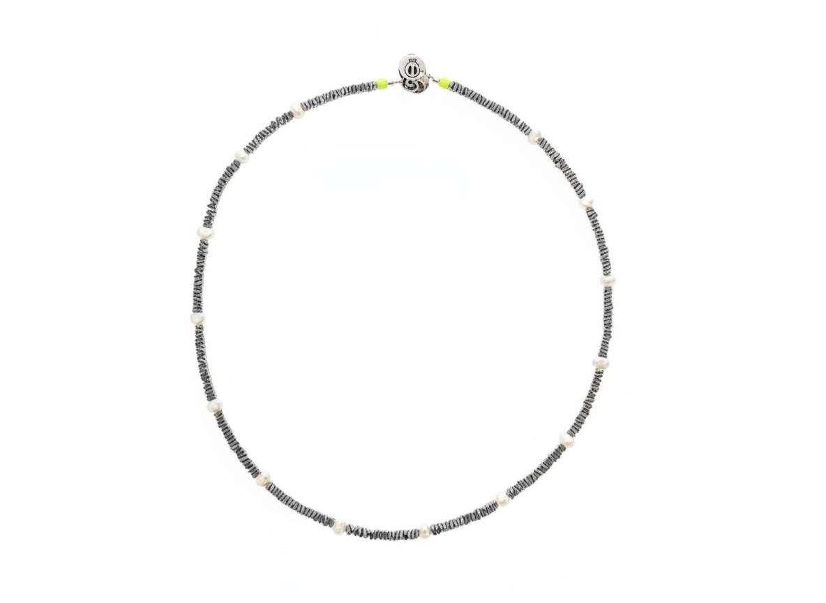 Slim Silver Hematite & Pearl Spacer Necklace by Bella Riley