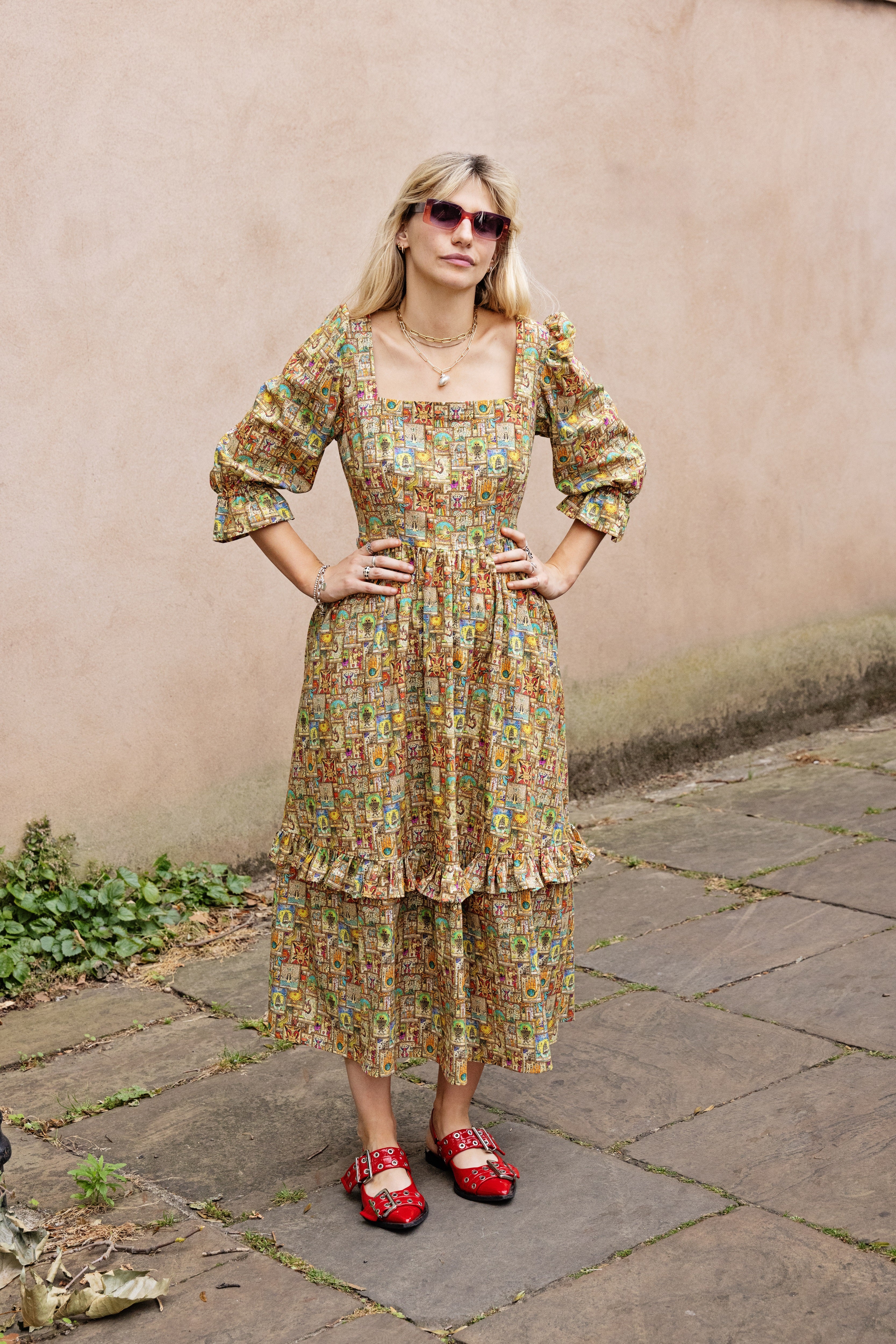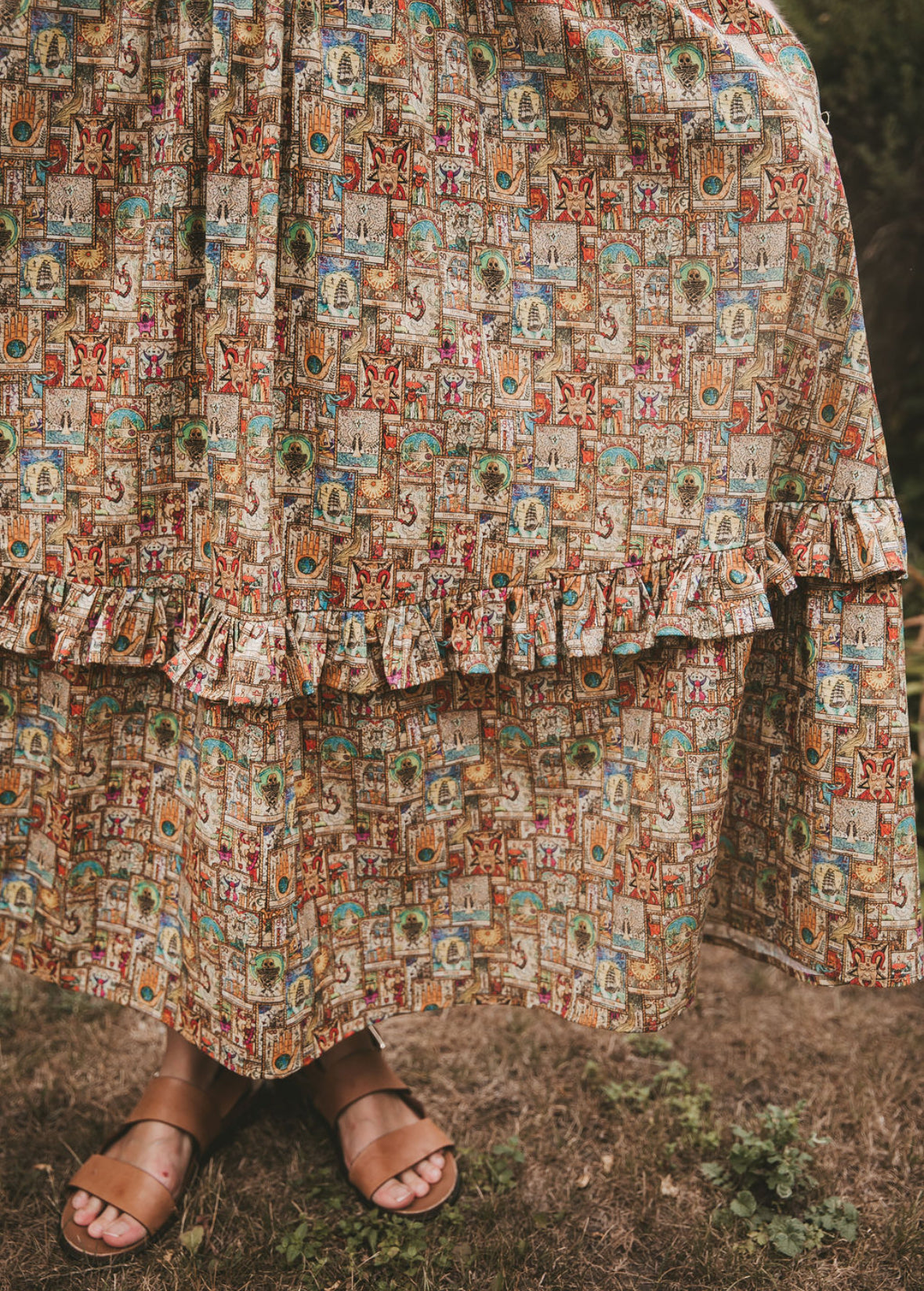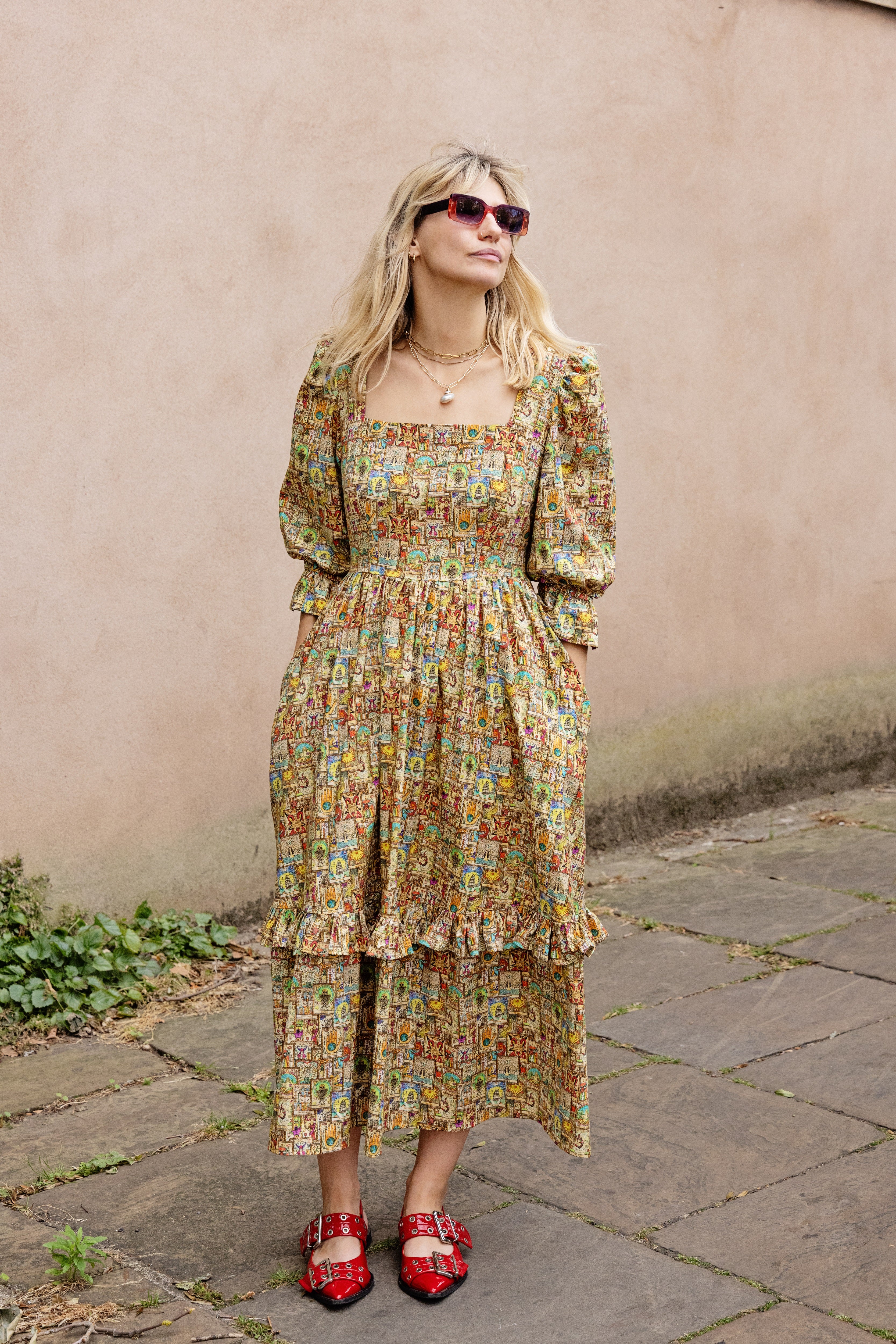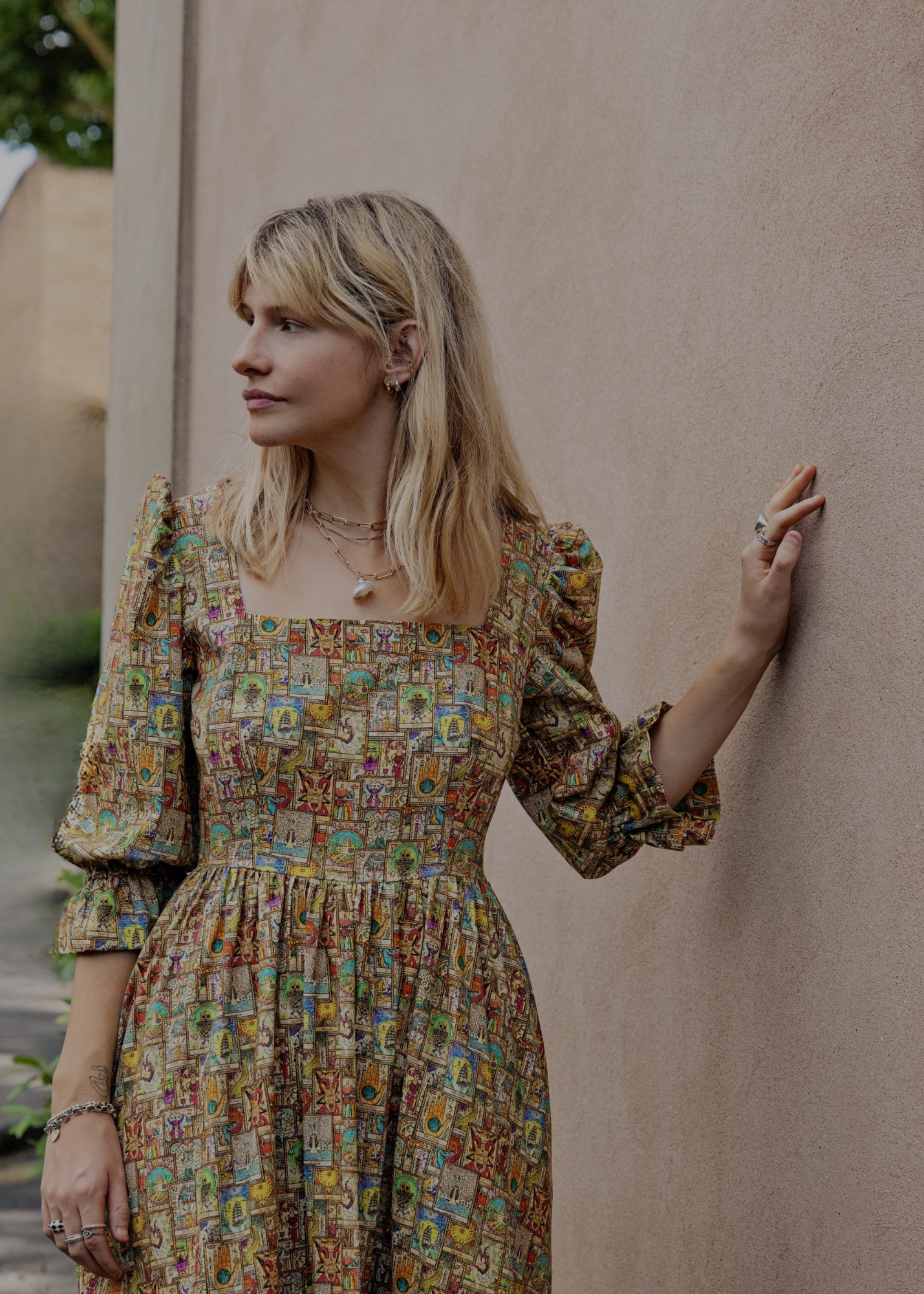 The best-selling Felicity Square Neck Dress in our unique Tarot Print, made by The Well Worn exclusively for Percy Langley. A beautifully detailed piece that blends romantic design with mystic-inspired charm for everyday wear or special occasions.