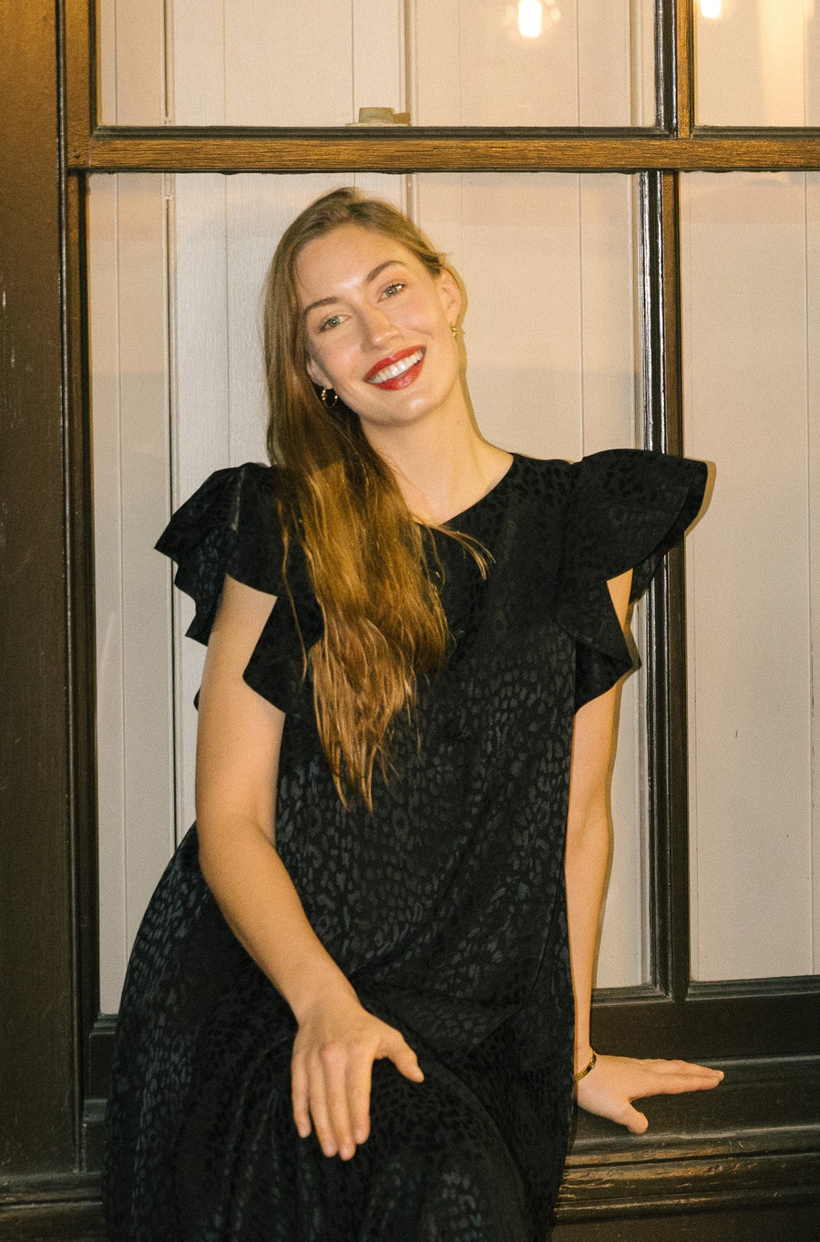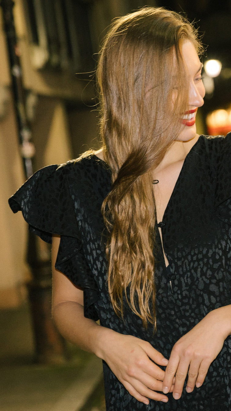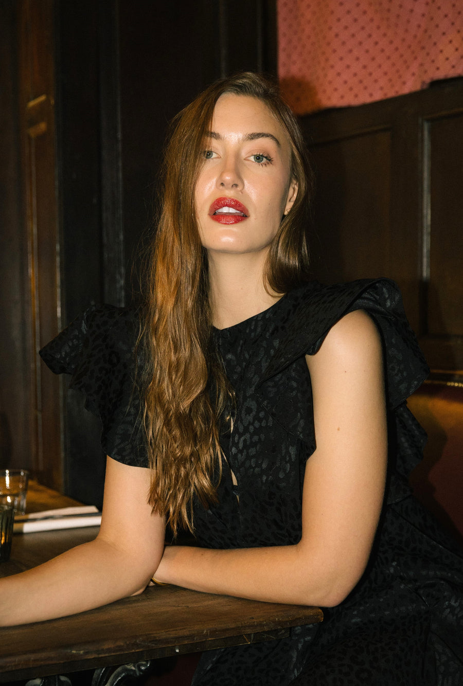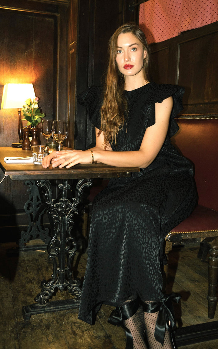 She's oozing old school glamour, with her fluid and feminine fall. Our sell-out signature sleeve, in a luxe and deliciously drapey leopard jacquard