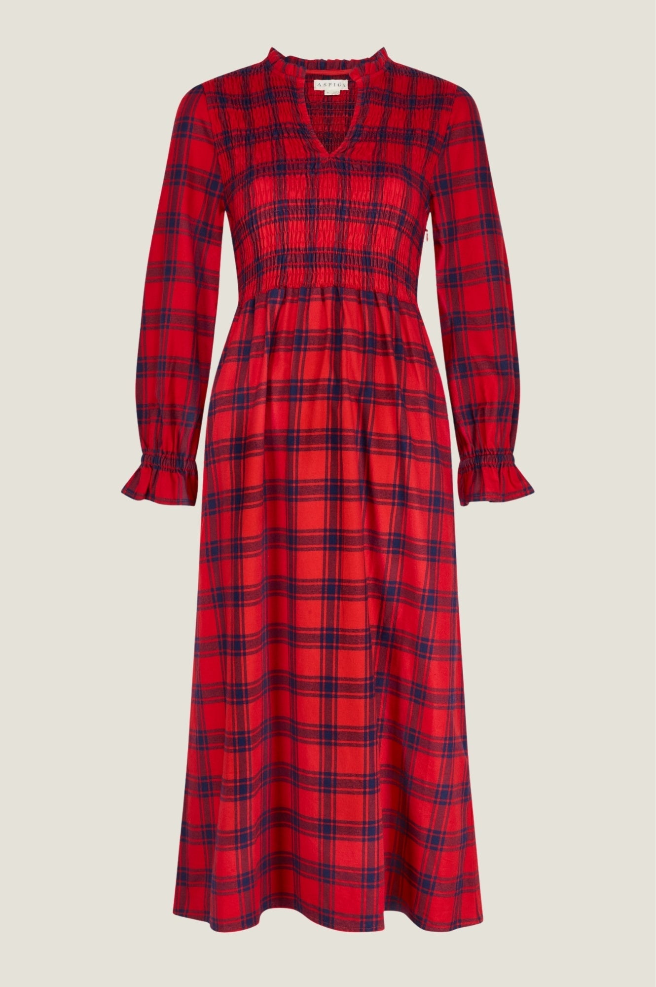 The Laura Brushed Cotton Checked Dress in Red Check is a timeless red checked midi dress designed for comfort and effortless style. Made from soft brushed cotton, it brings together heritage checks with a flattering modern silhouette.