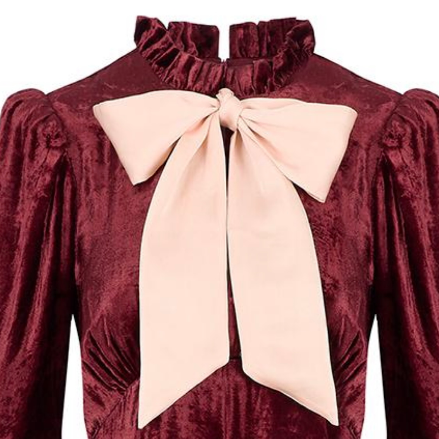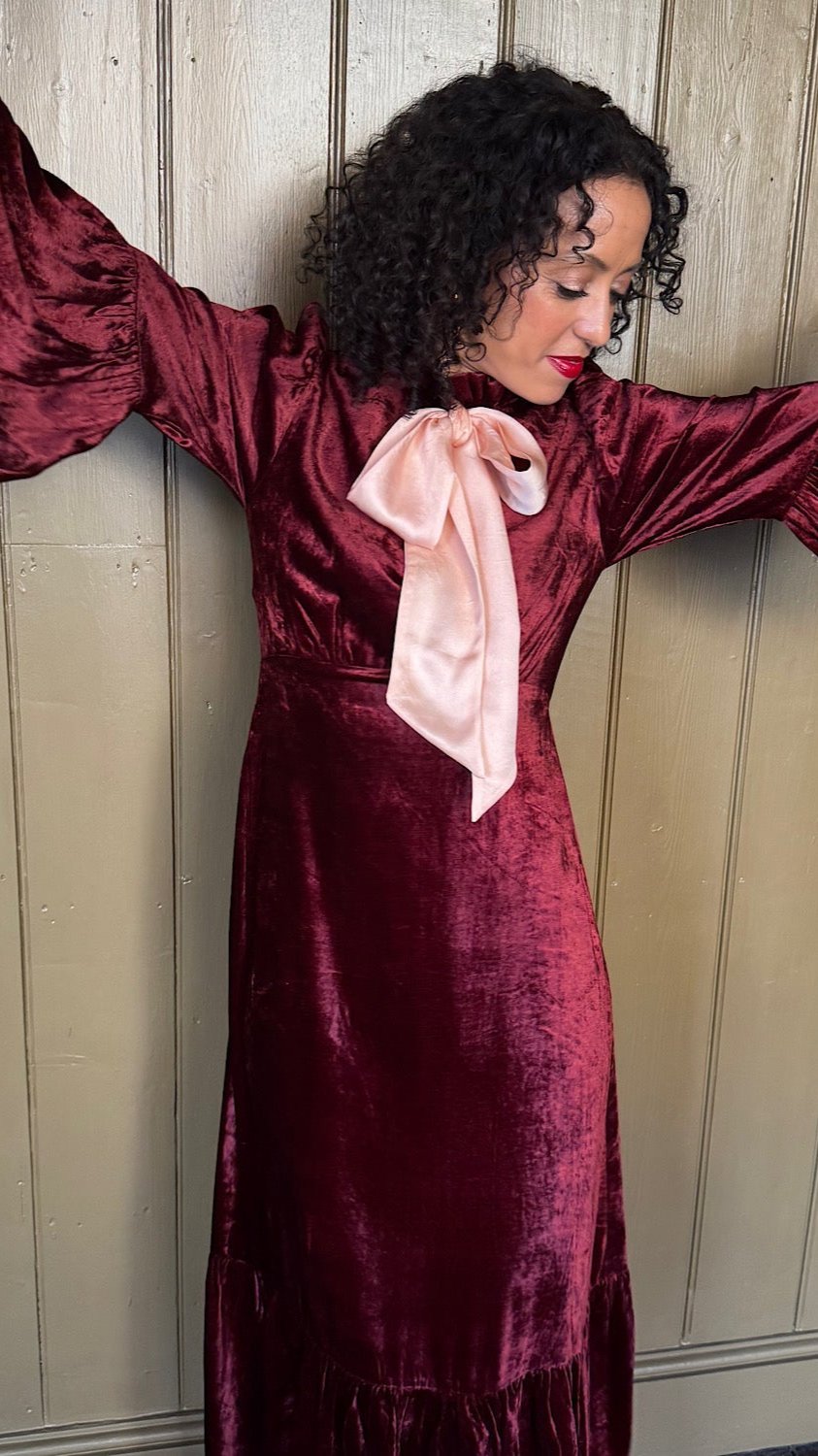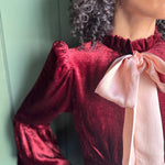Ophelia Dress in Burgundy Velvet with Contrast Satin Tie
