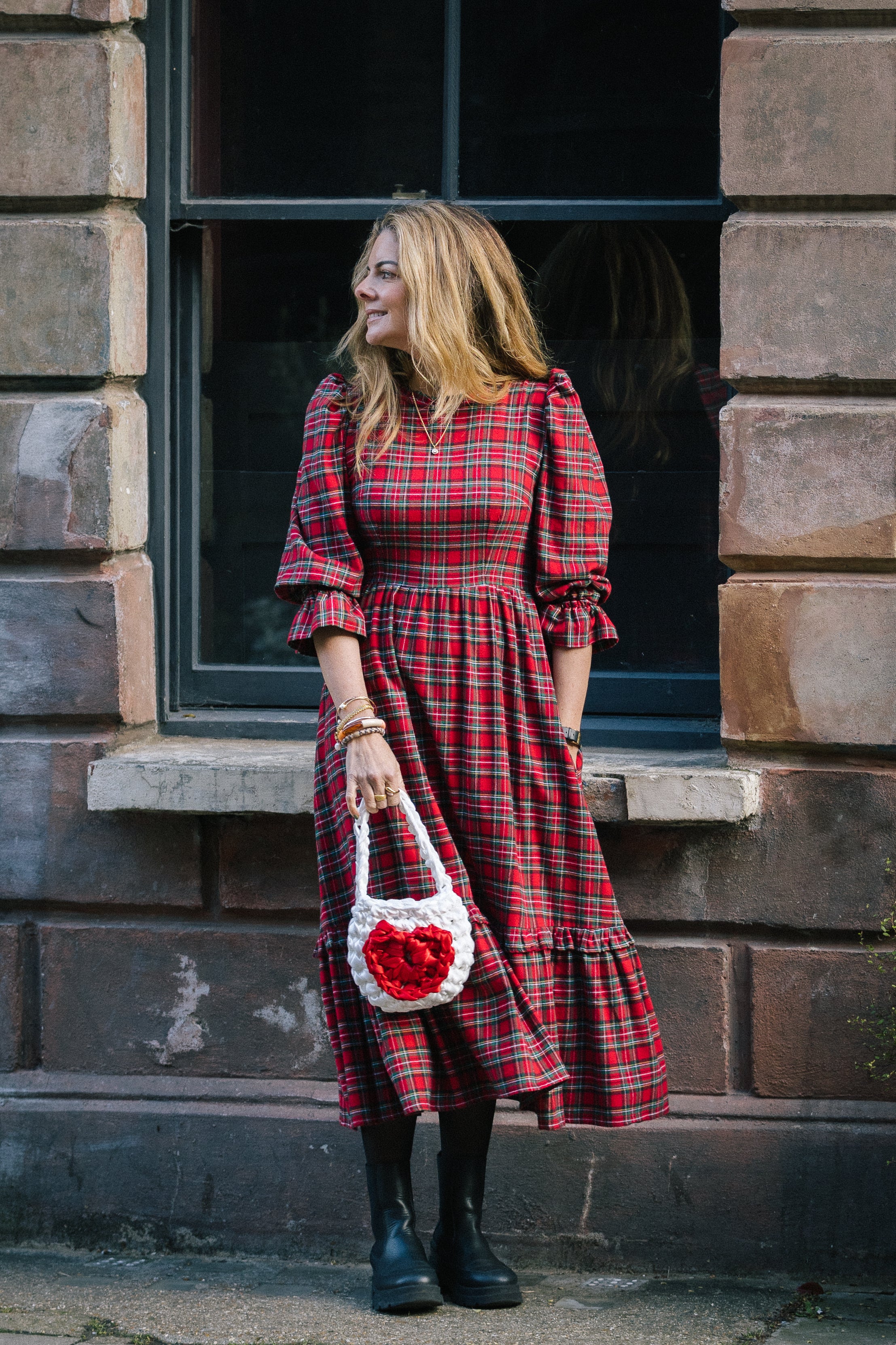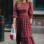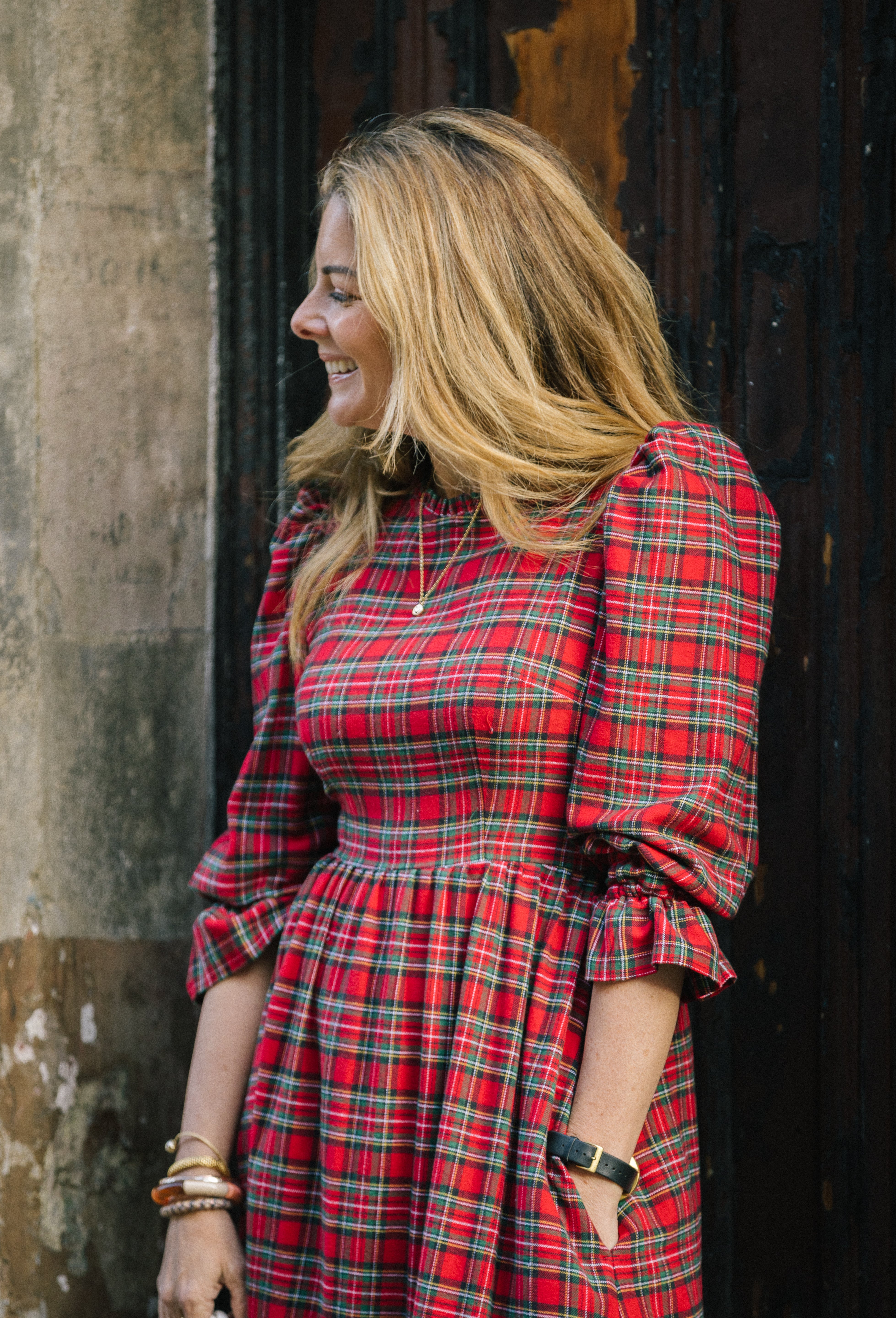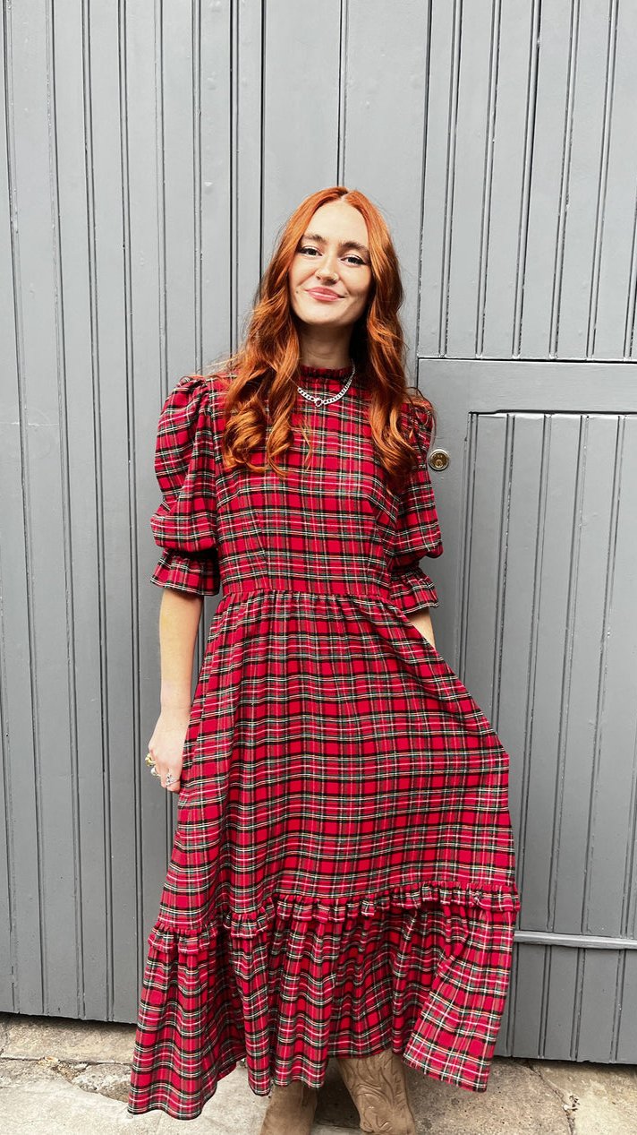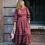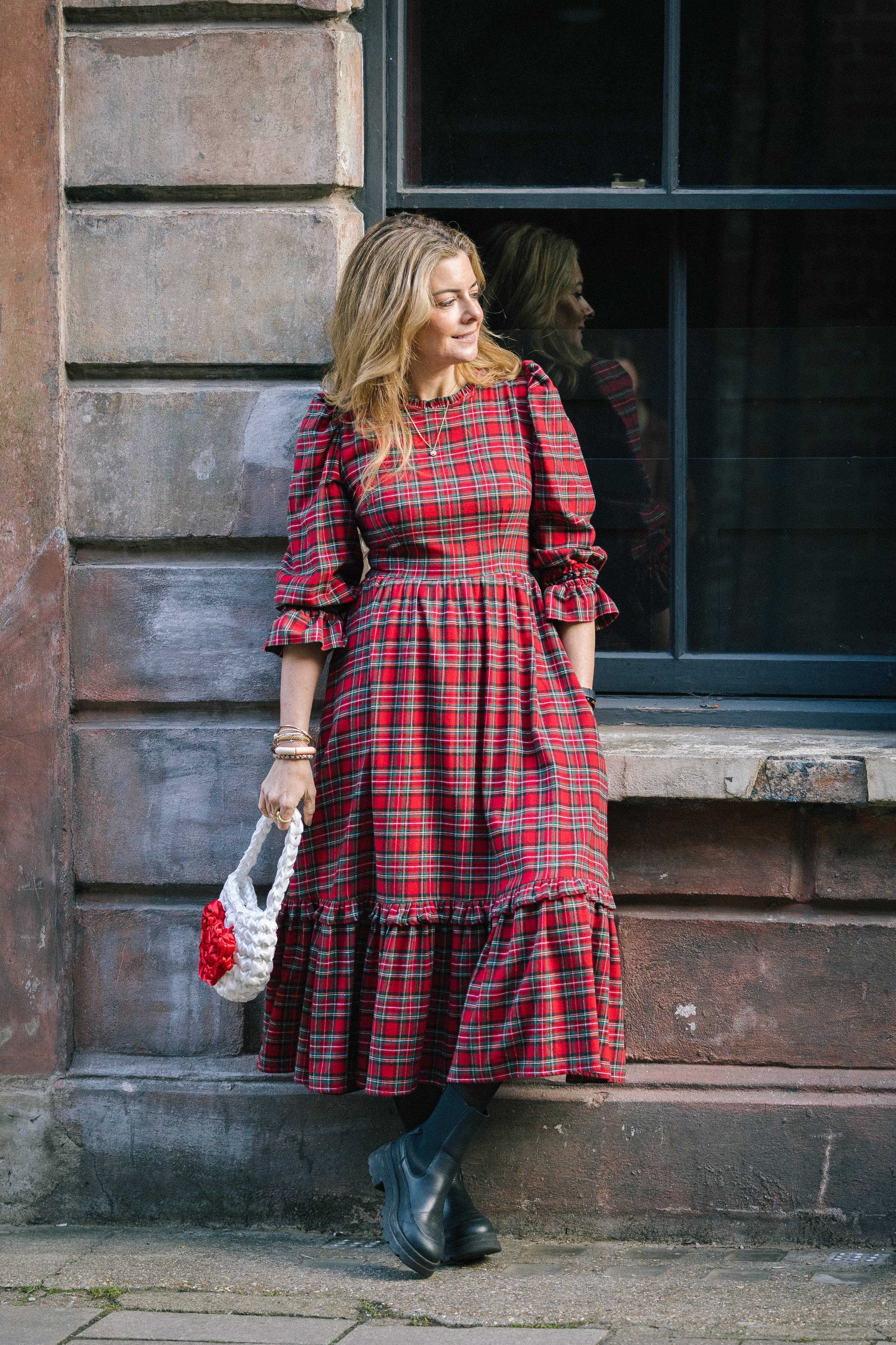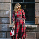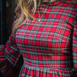 Made from luxurious deadstock tartan cotton, the Rosalie has a full, tiered skirt in traditional Red Stewart tartan. A concealed zip down the back keeps the lines clean and effortless, and yes—this dress comes with pockets, perfect for everyday wearability.