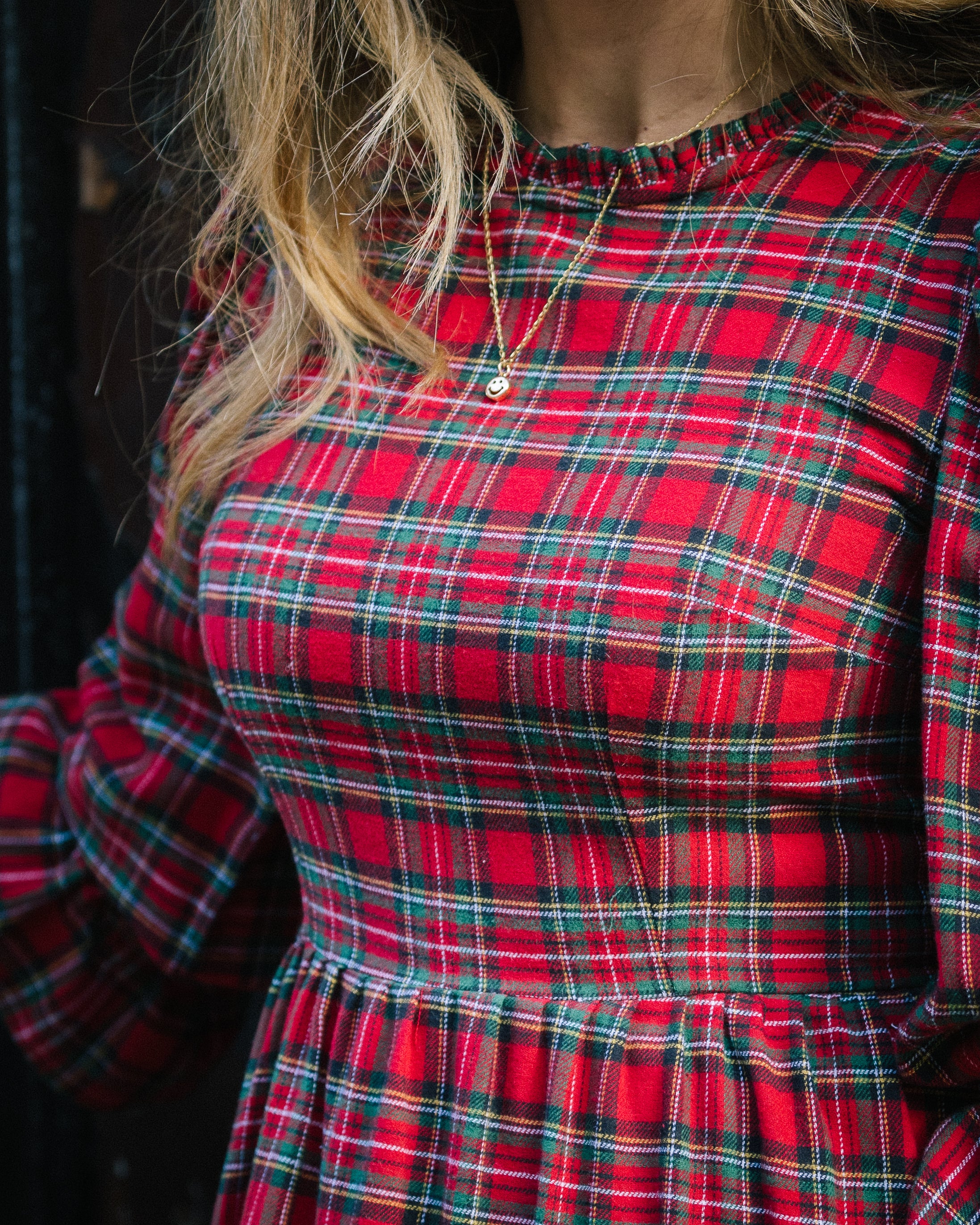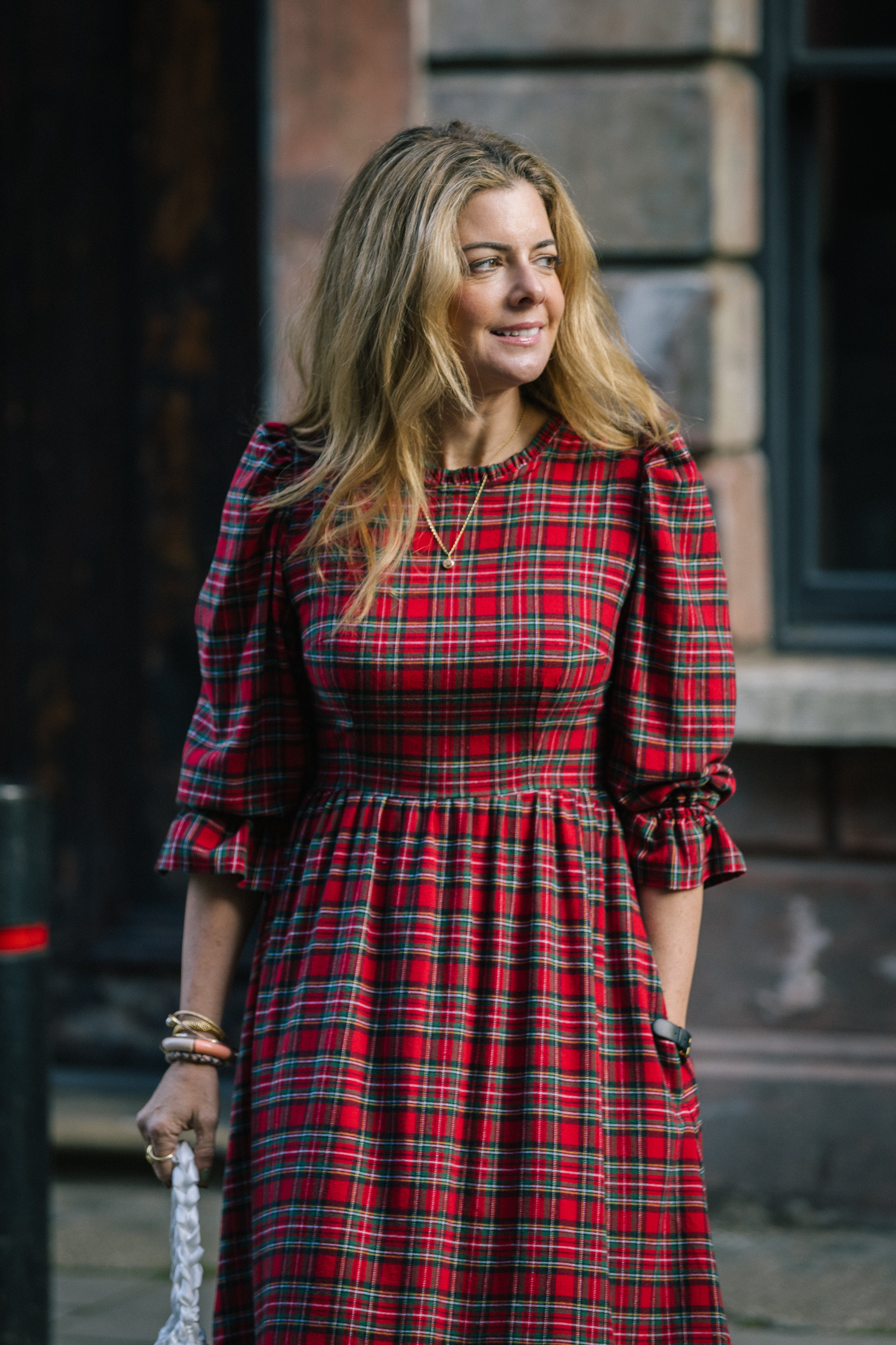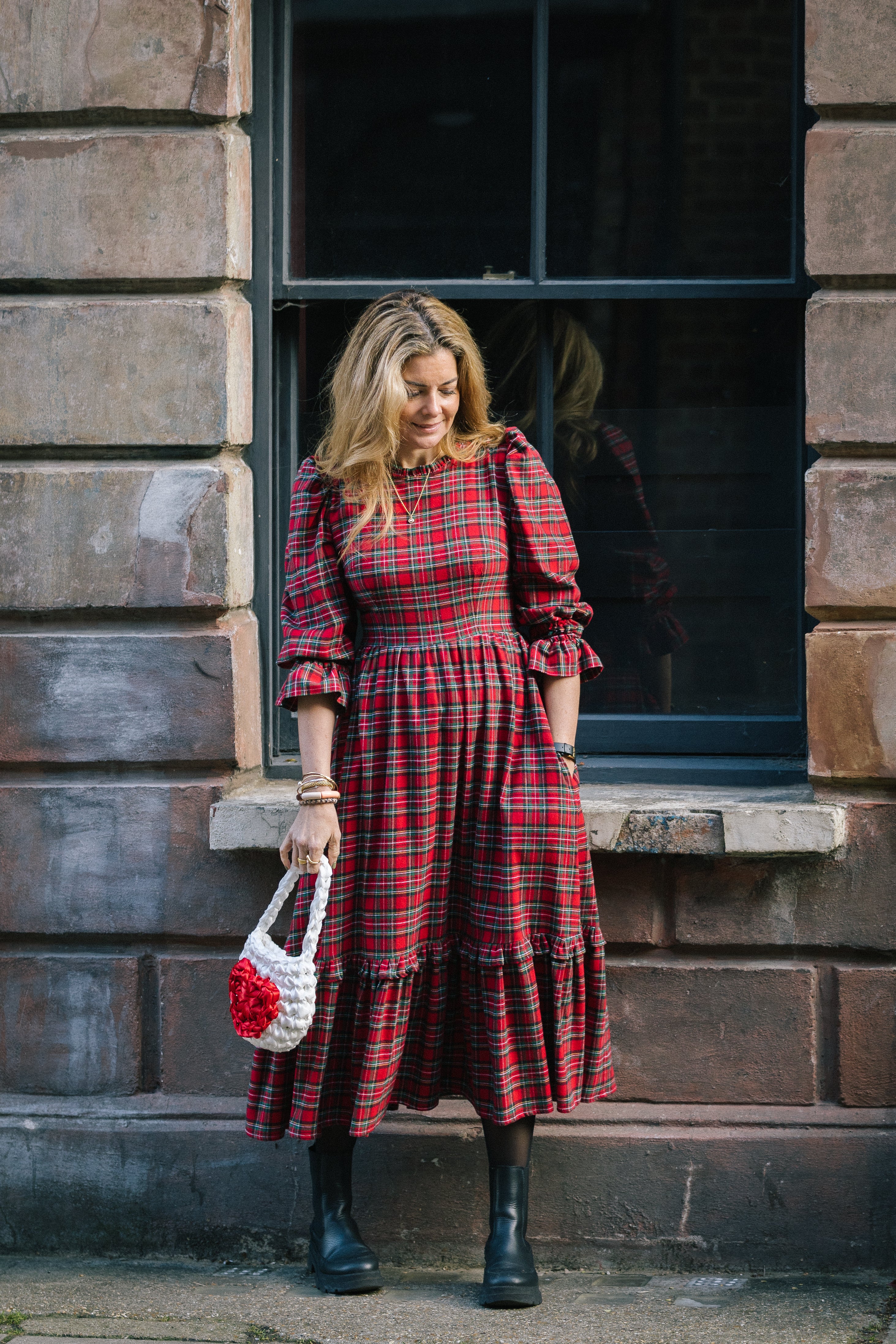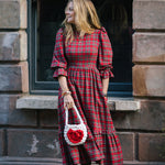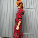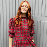 Made from luxurious deadstock tartan cotton, the Rosalie has a full, tiered skirt in traditional Red Stewart tartan. A concealed zip down the back keeps the lines clean and effortless, and yes—this dress comes with pockets, perfect for everyday wearability.
