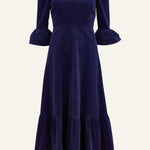 Victoria Round Neck Corduroy Midi Dress in Navy