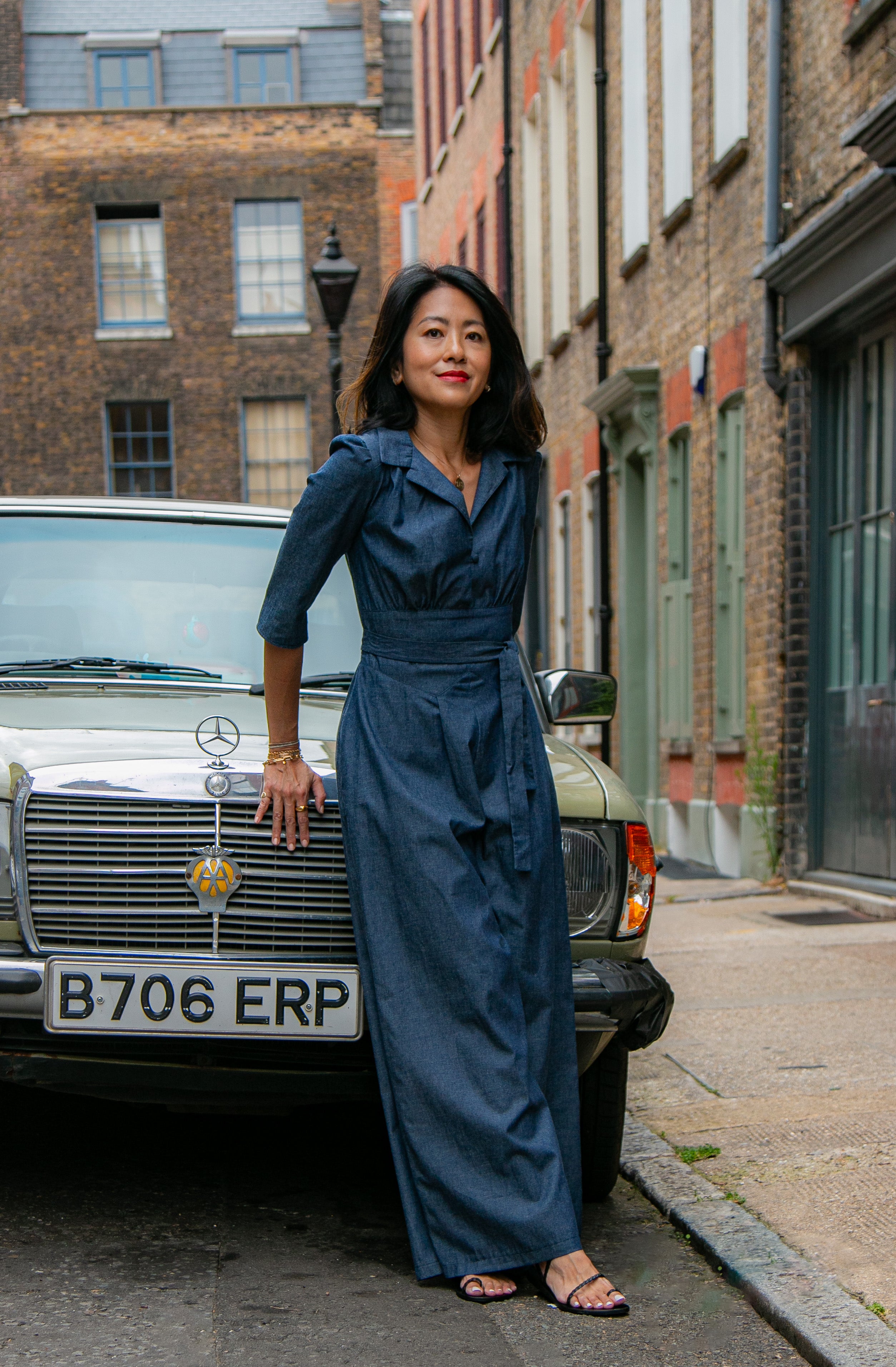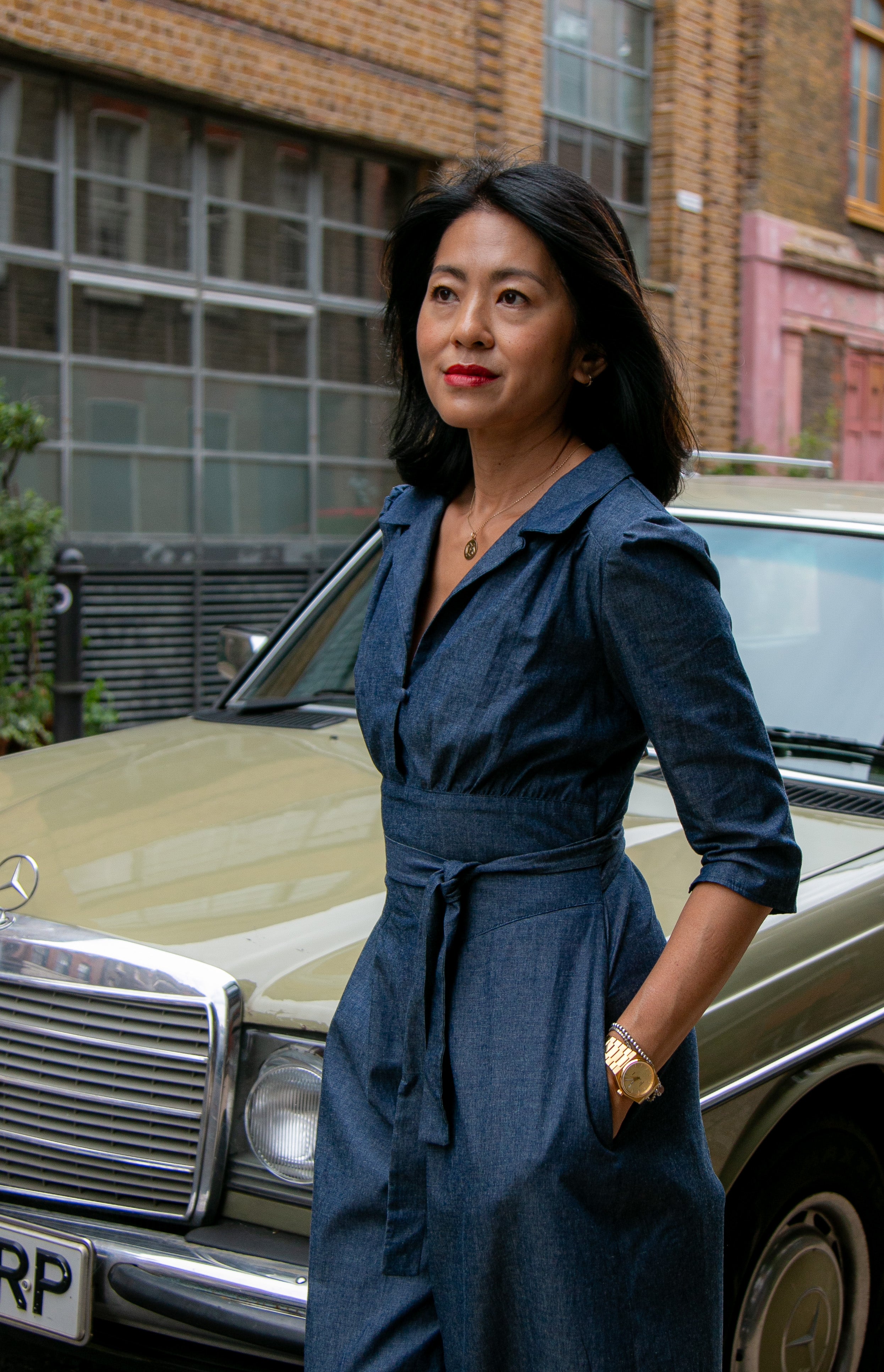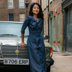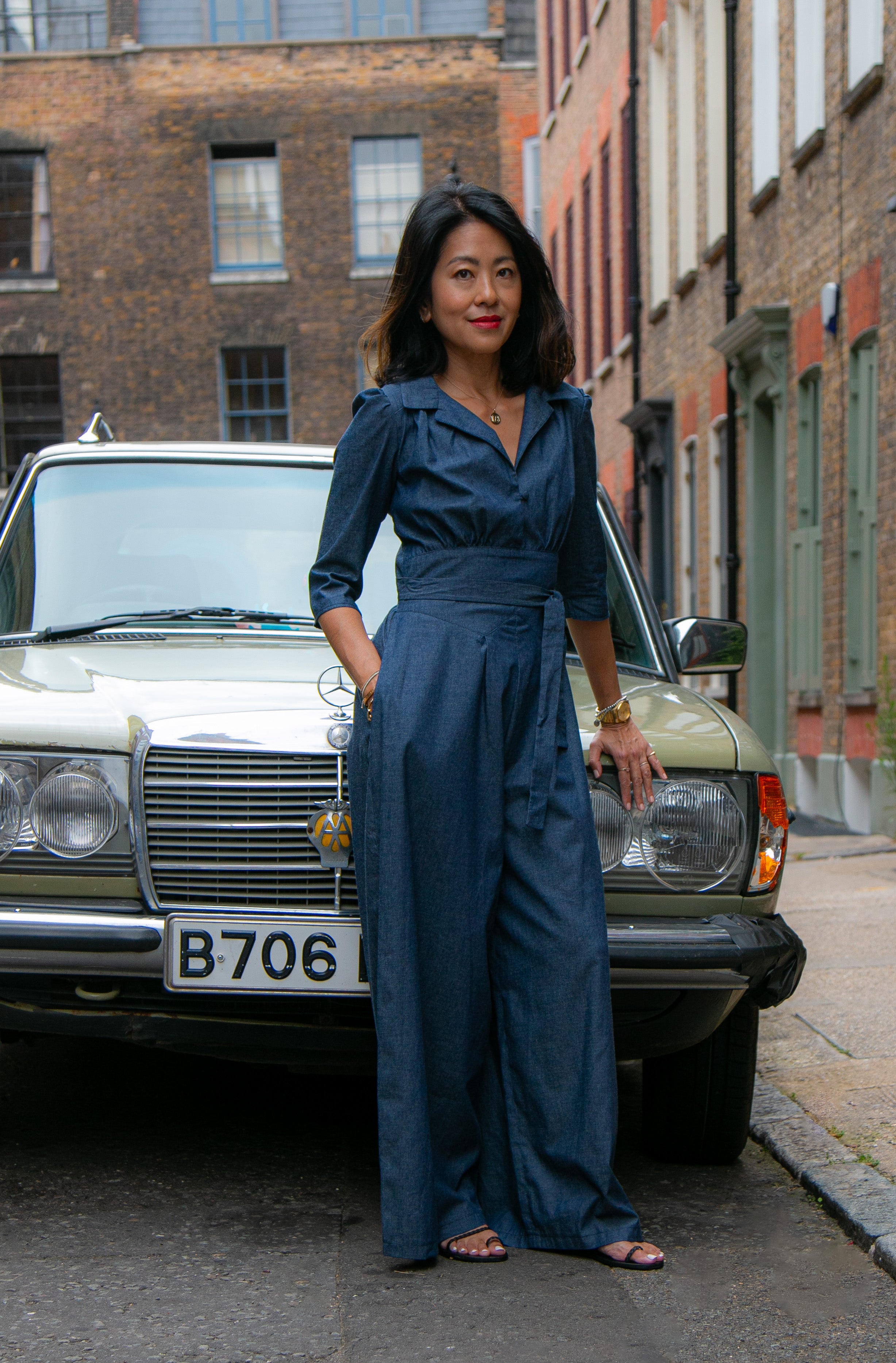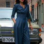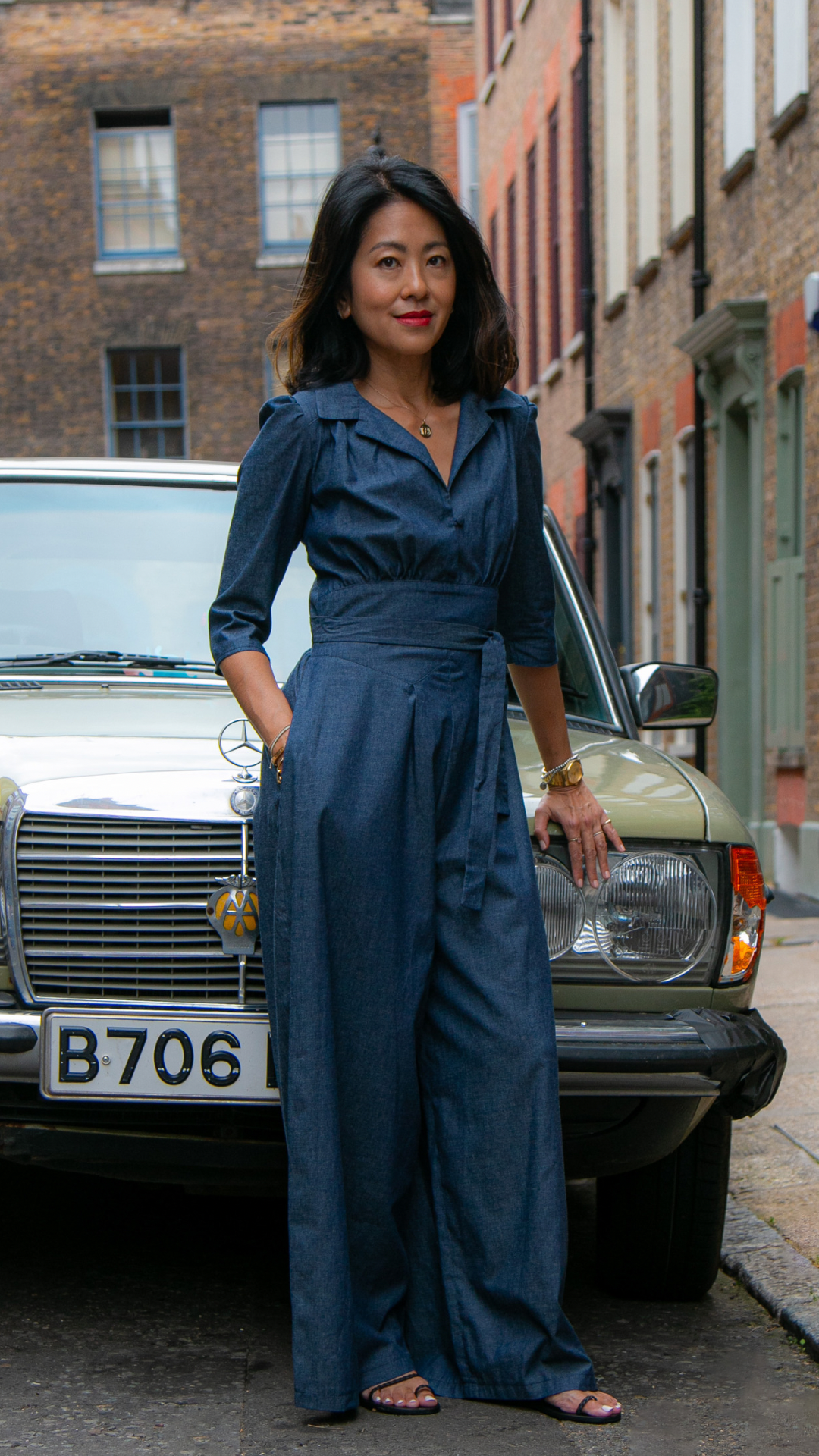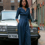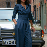 The tailored jumpsuit by Elaine Bernstein is her best selling style for a reason; the unrivalled mix of flattering and comfortable. The denim chambray fabric of this jumpsuit has 2% elastane, so the fabric  expands and contracts accordingly making it a wear everywhere investment piece.
