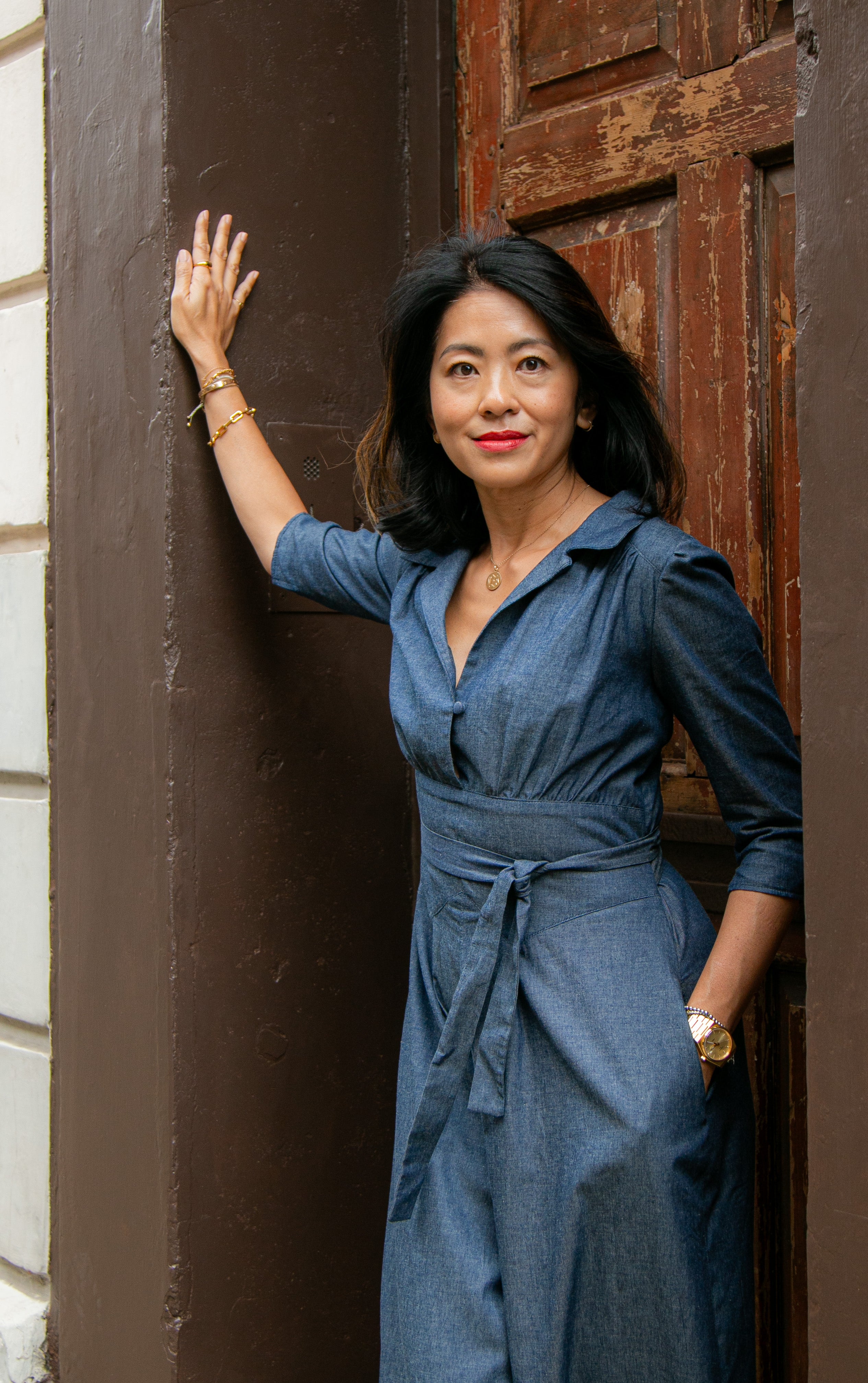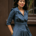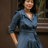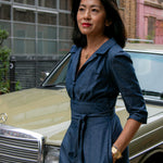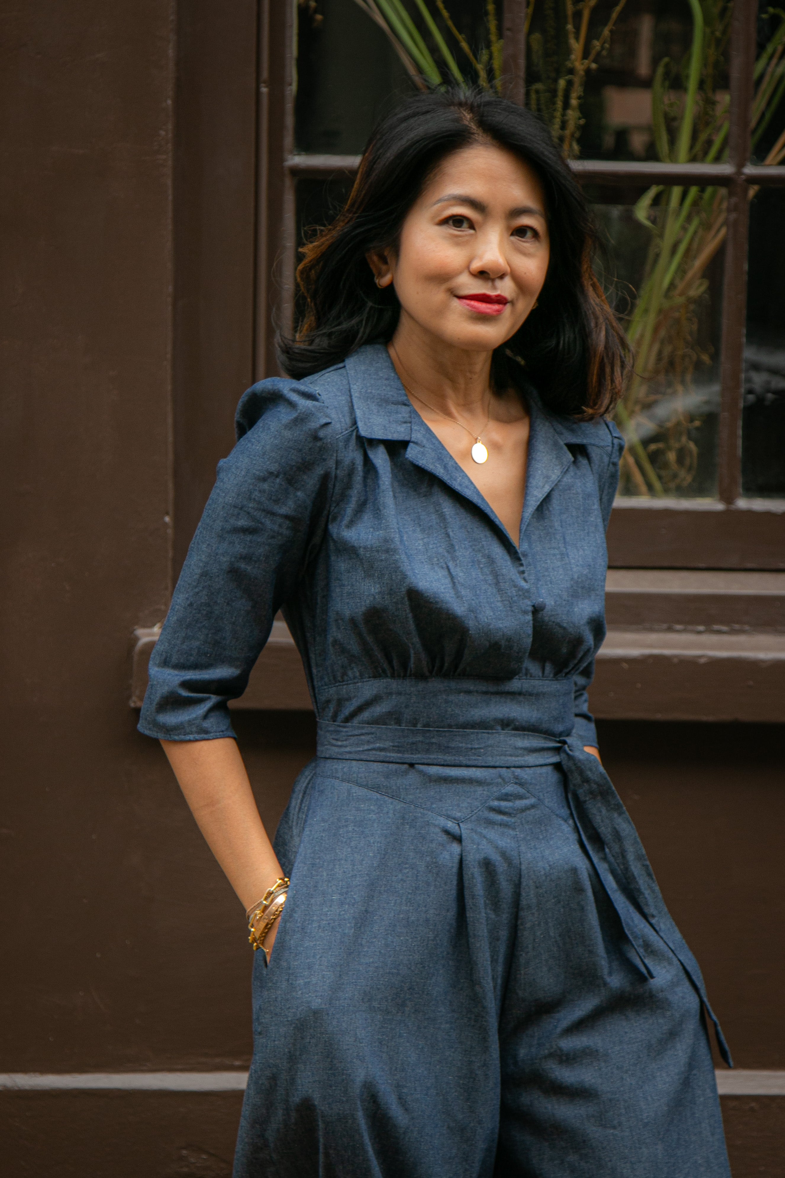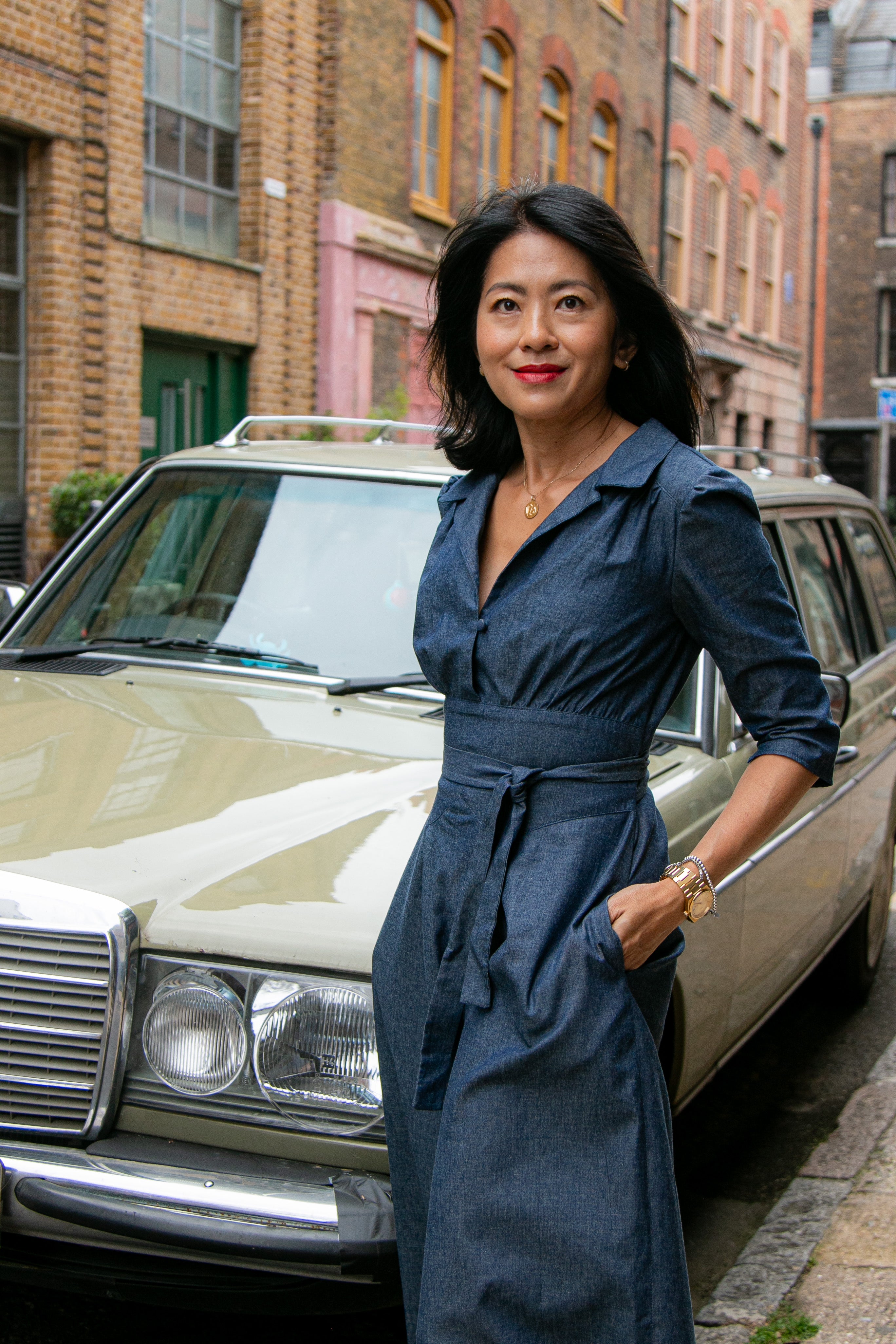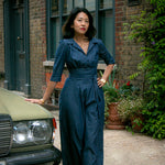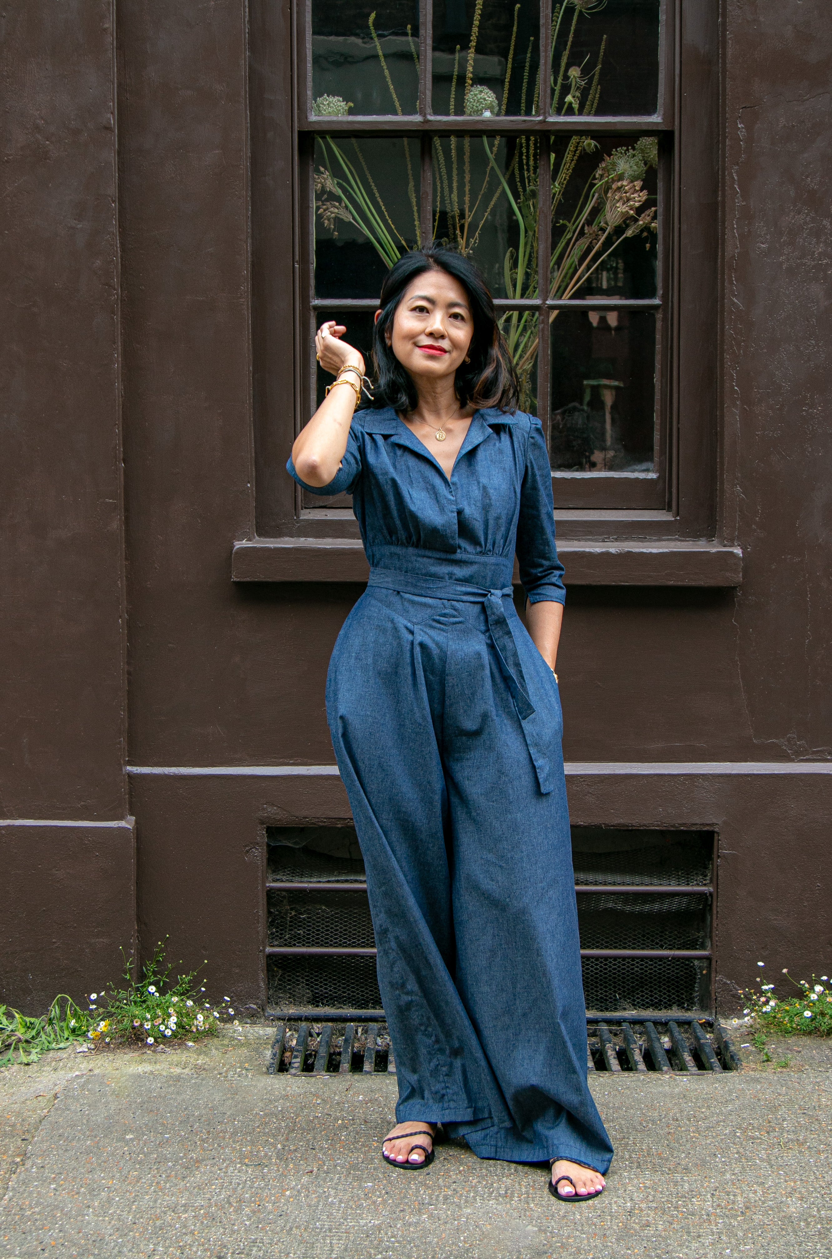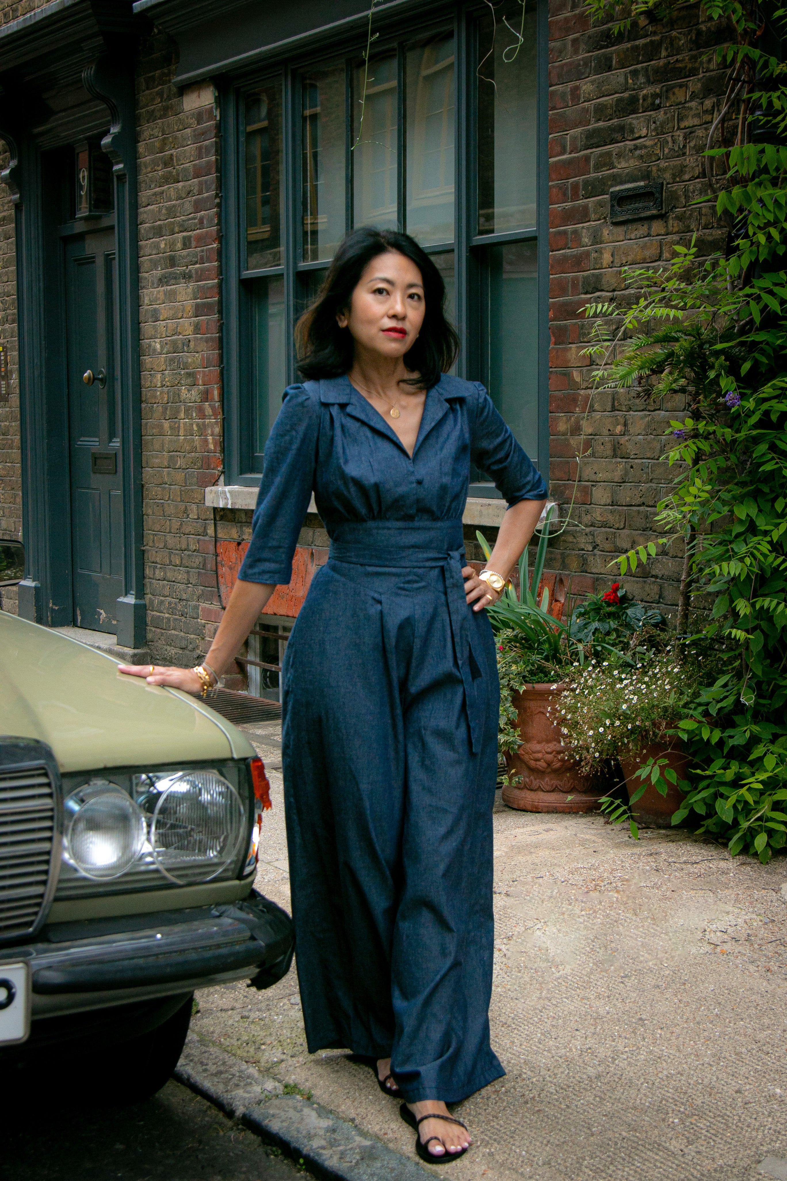 The tailored jumpsuit by Elaine Bernstein is her best selling style for a reason; the unrivalled mix of flattering and comfortable. The denim chambray fabric of this jumpsuit has 2% elastane, so the fabric  expands and contracts accordingly making it a wear everywhere investment piece.