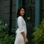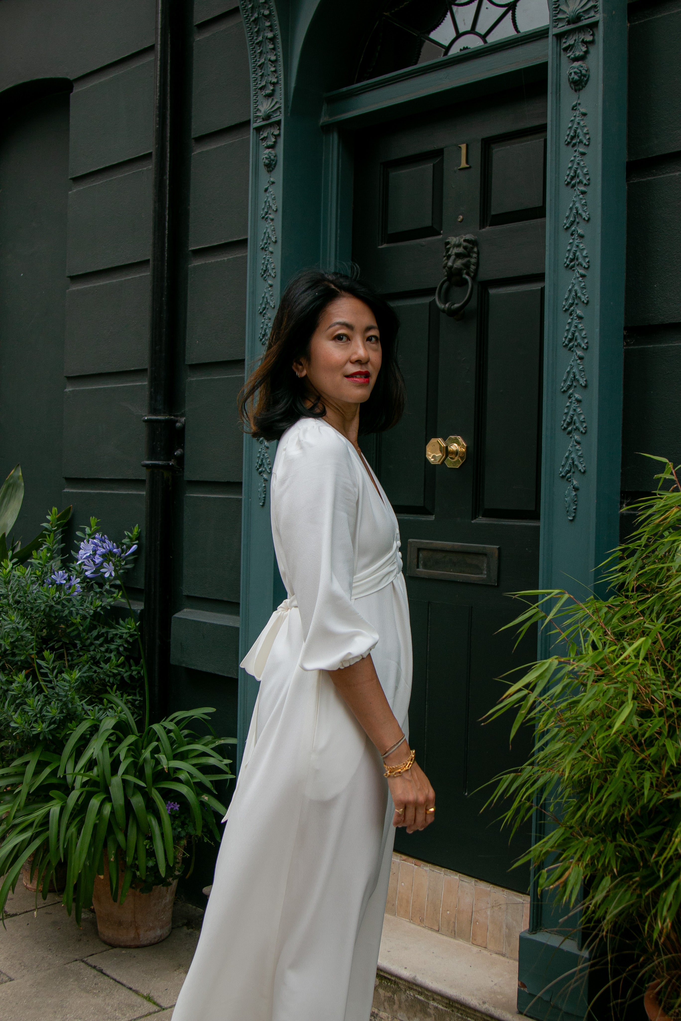 Handmade in London by tailoring expert Elaine Bernstein, this beautiful dress is available in four colours; Green, Black Cobalt Blue and Ivory.