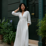 The flowing Abigail maxi dress is reminiscent of the  glamour of iconic designer Ossie Clark’s dresses. What’s so special about the Abigail dress is that it flows whilst giving a shape at the same time.  This dress is an incredible combination of glamorous yet super comfortable, with a maxi skirt base that creates length and romantic style.