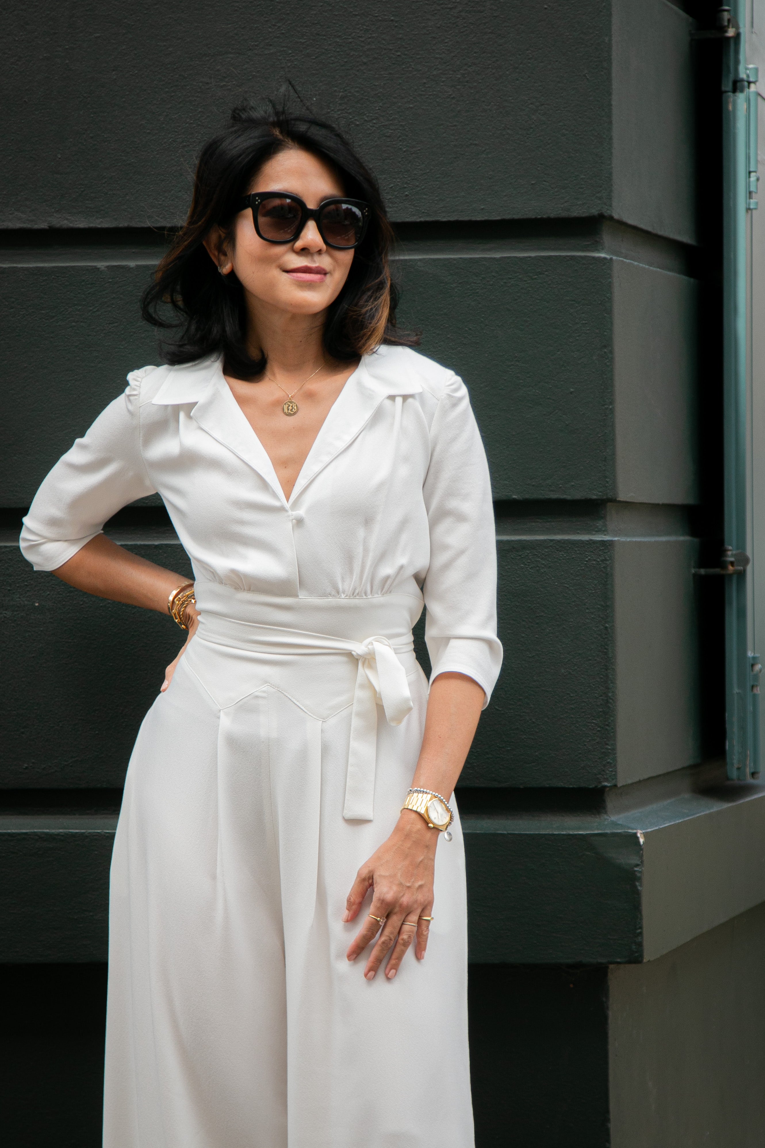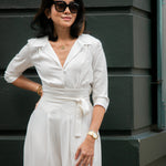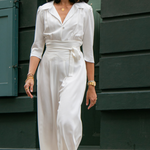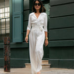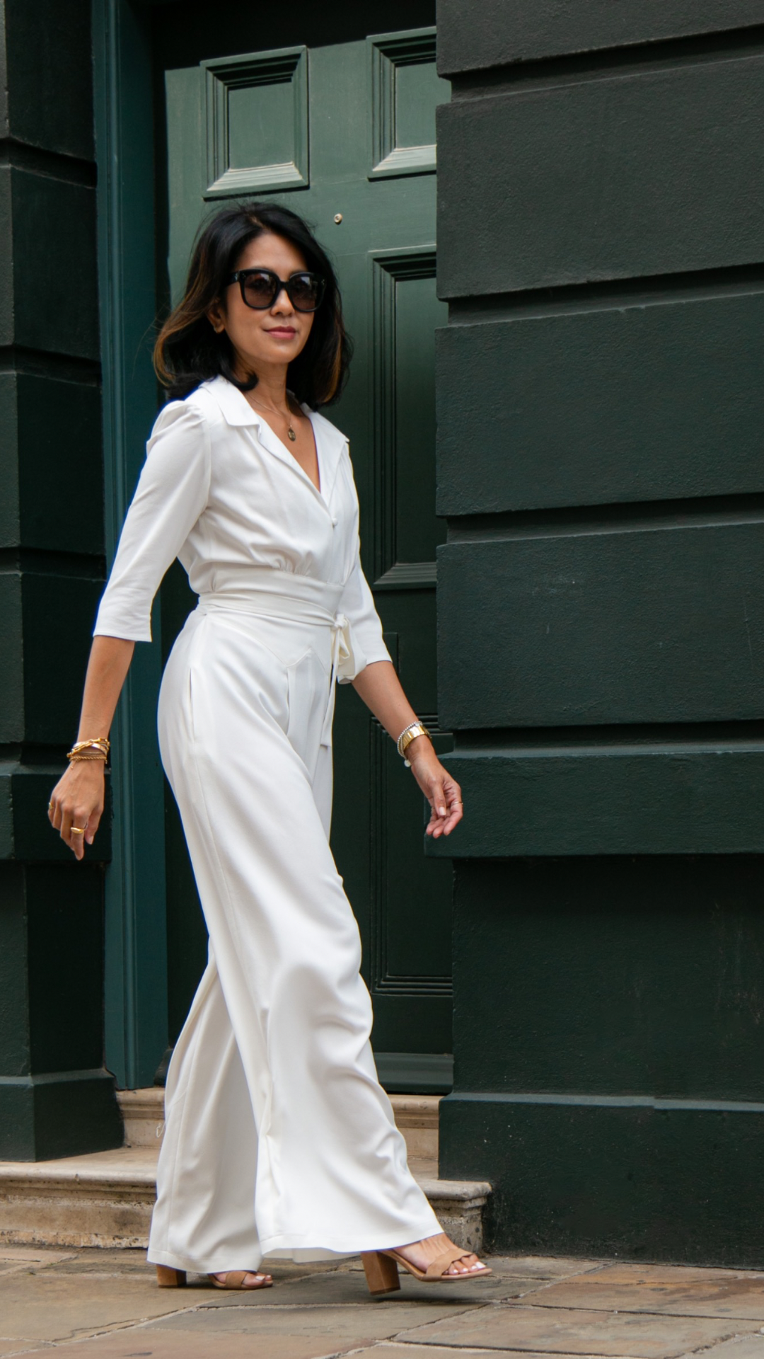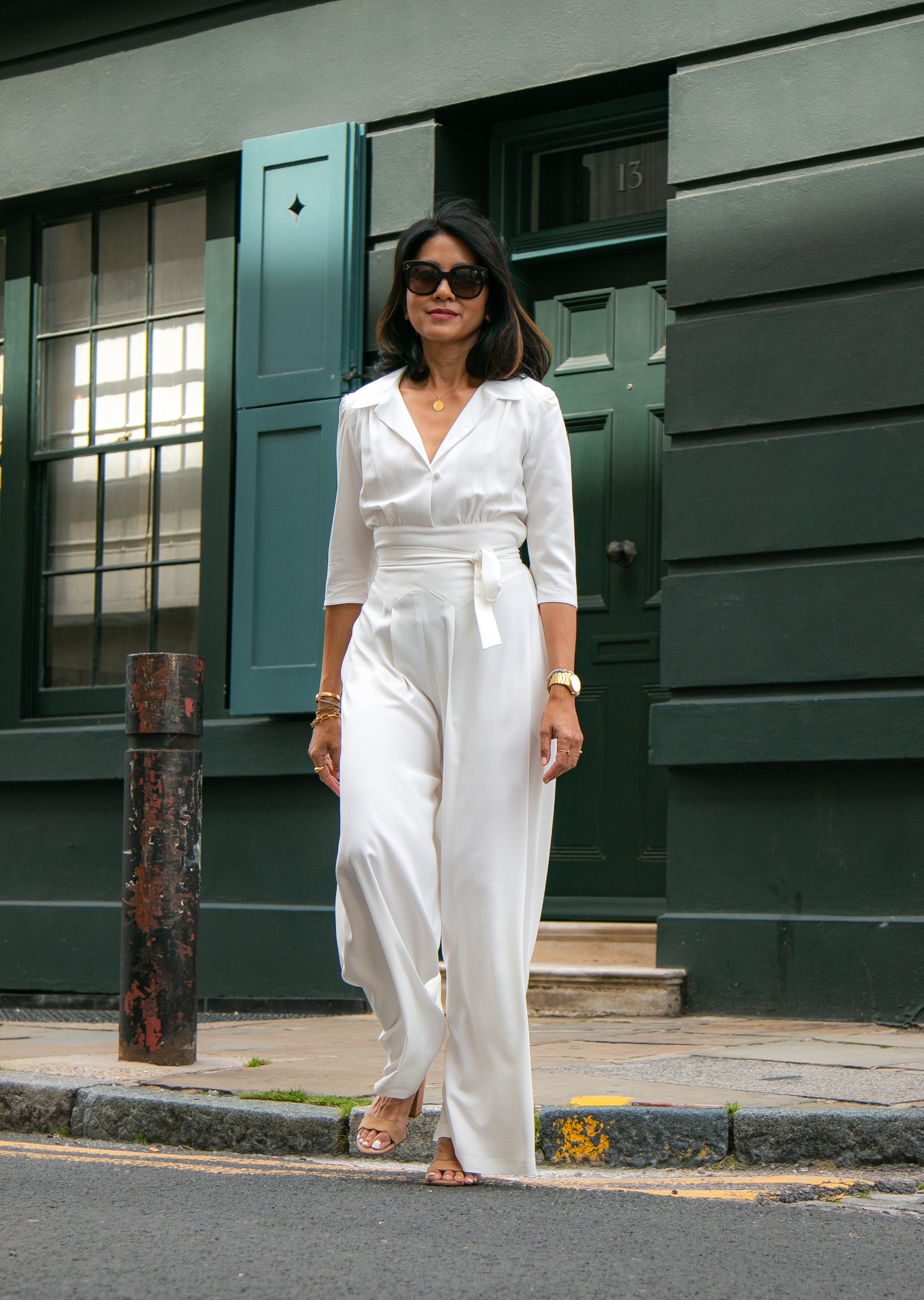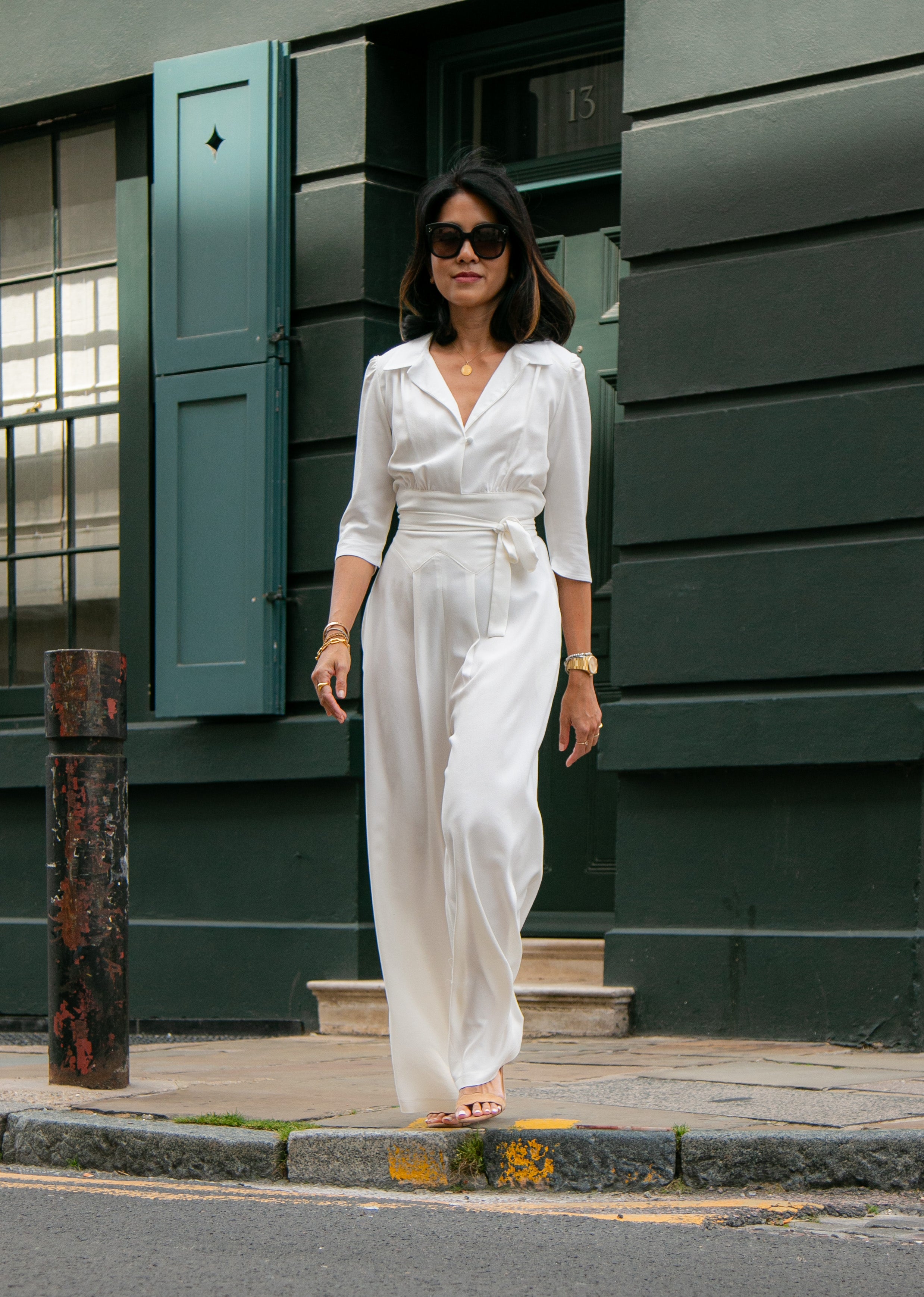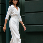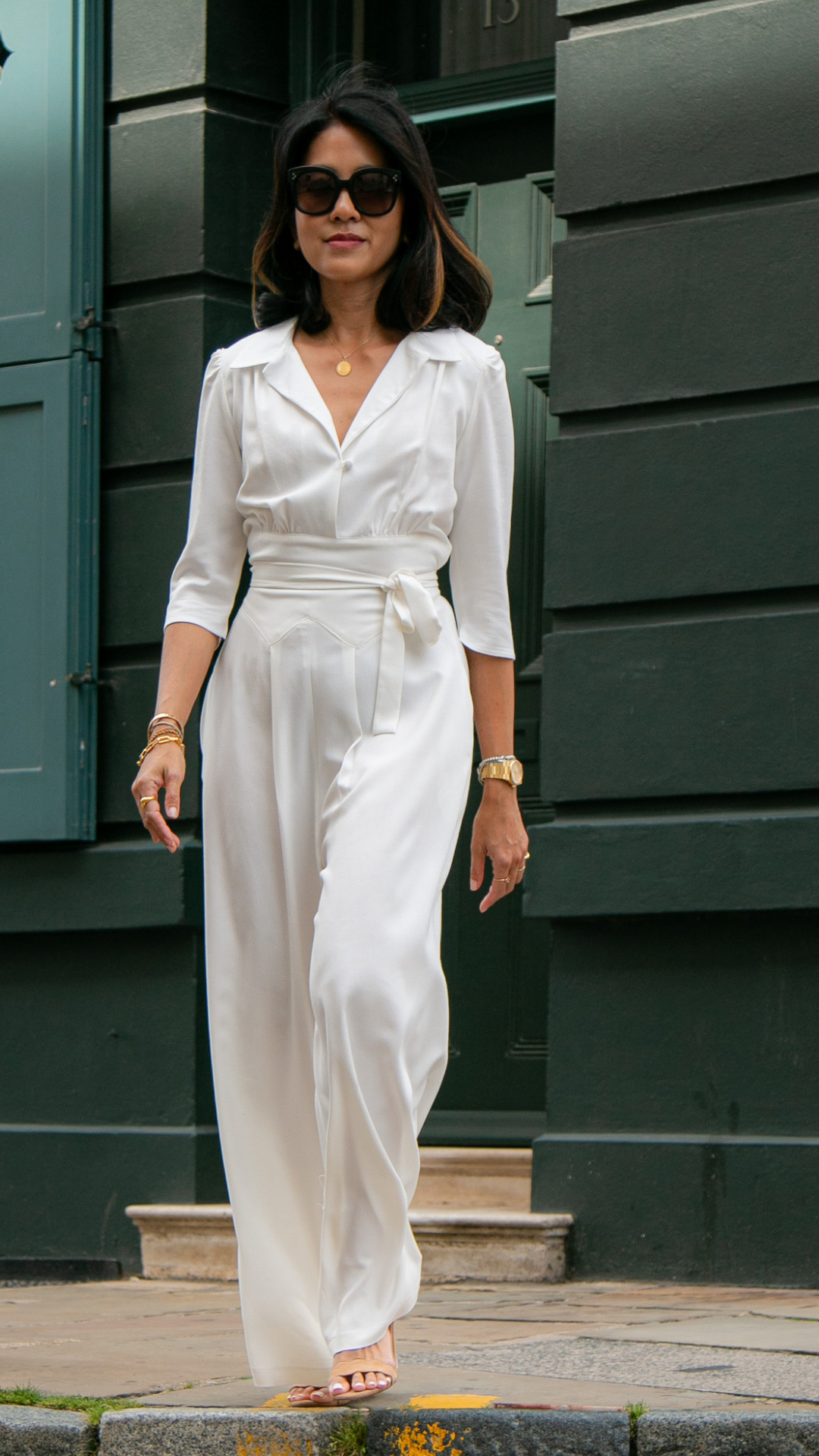 The tailored jumpsuit by Elaine Bernstein is her best selling style for a reason; the unrivalled mix of flattering and comfortable. The ivory crepe jumpsuit is made in a poly/viscose mix, the flow of the fabric means it hangs brilliantly.  With 2% elastane the fabric  expands and contracts accordingly making it a wear everywhere investment piece.
