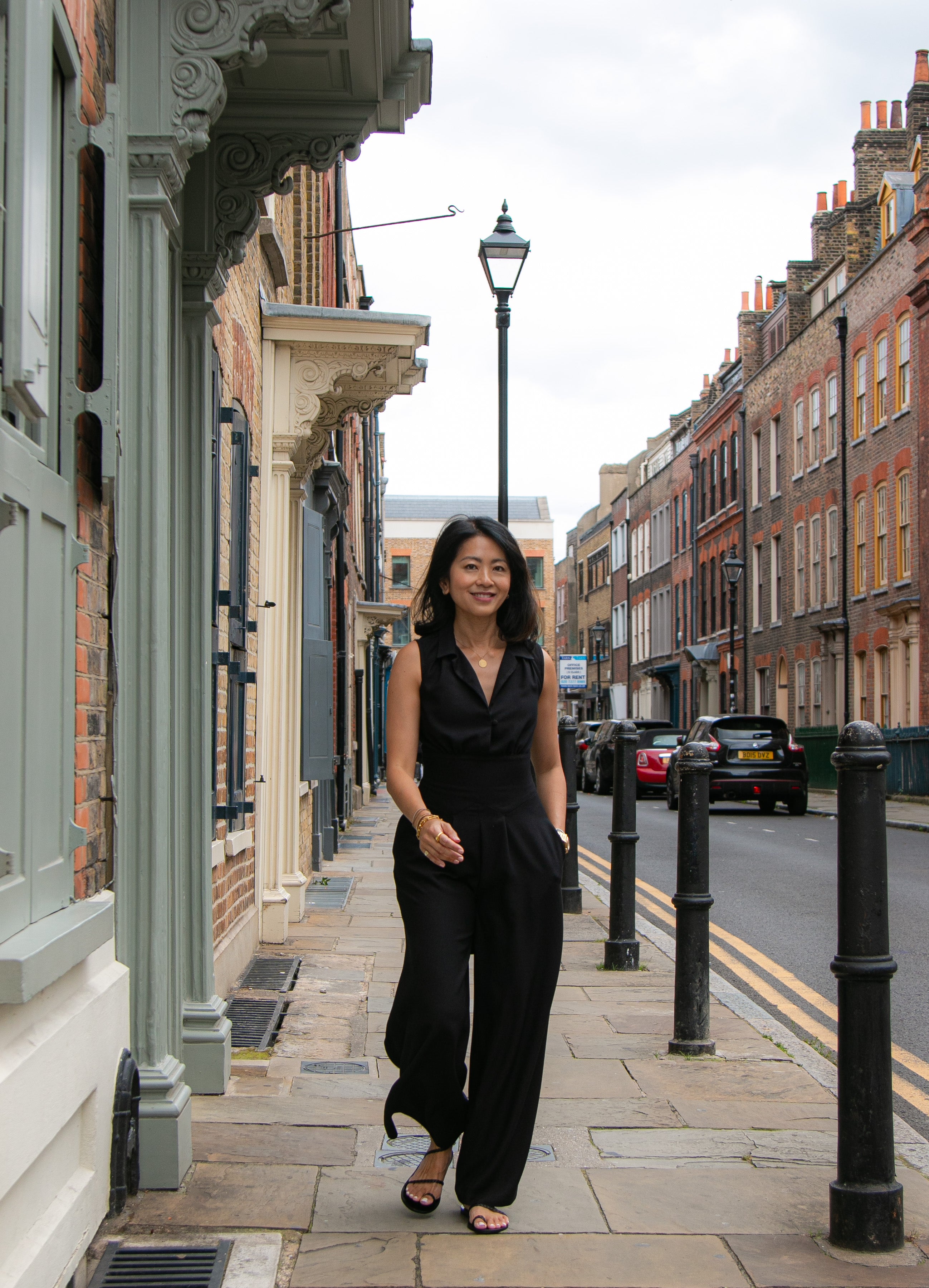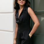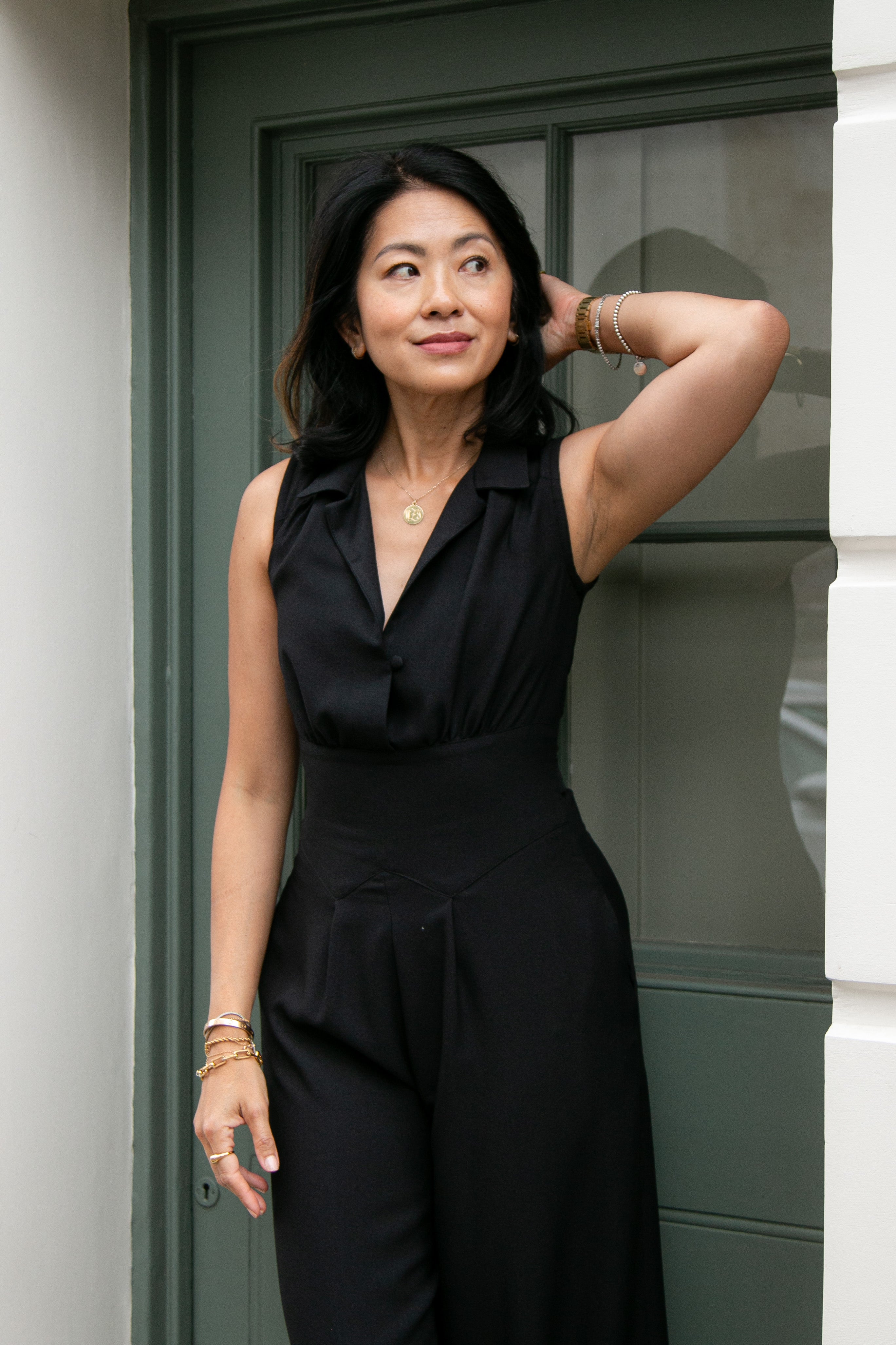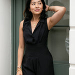 The tailored jumpsuit by Elaine Bernstein is her best selling style for a reason; the unrivalled mix of flattering and comfortable. The black crepe jumpsuit is made in a poly/viscose mix, the flow of the fabric means it hangs brilliantly.  With 2% elastane the fabric  expands and contracts accordingly making it a wear everywhere investment piece.