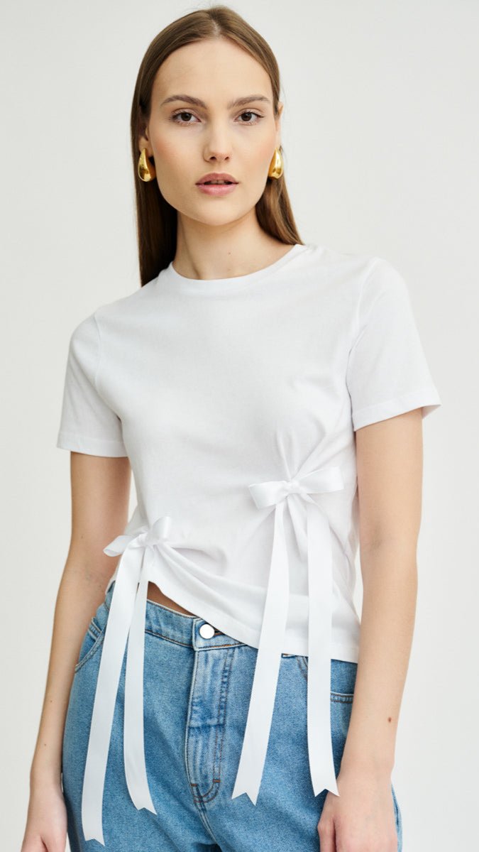 Women's White T-Shirt With Bows | Blossom Bow Top | Fanfare