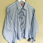 The Blue Check Darted Shirt from Grandpa's Shirts has been thoughtfully reimagined from an upcycled men's shirt into a flattering, feminine silhouette. Designed with precise darts and a tie-front fastening, it creates a cinched waist that adds shape while maintaining an easy, relaxed feel.