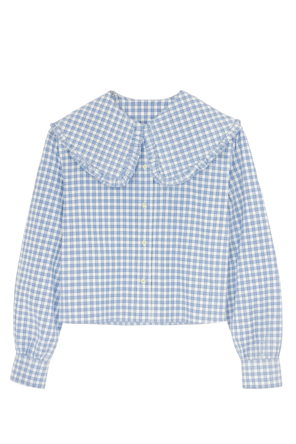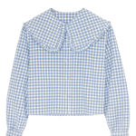Blue Check Shirt with Big Frill Collar