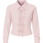 The darted construction defines the waist, while the tie-front fastening adds a feminine twist to the structured shirt shape.