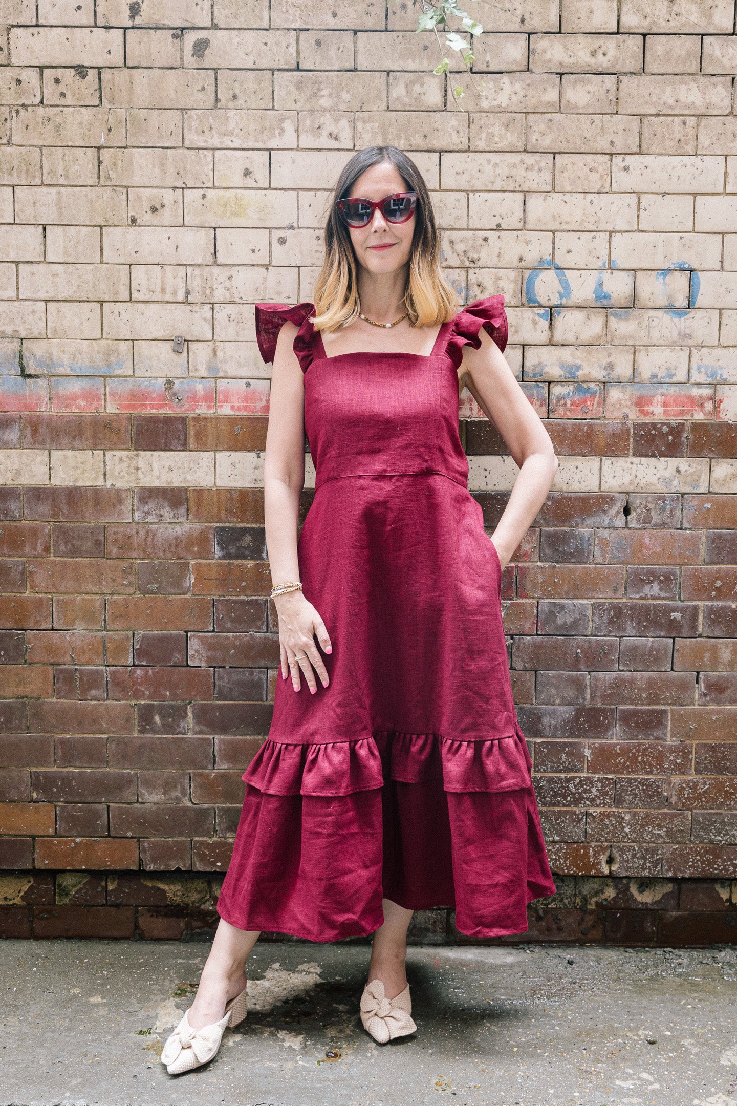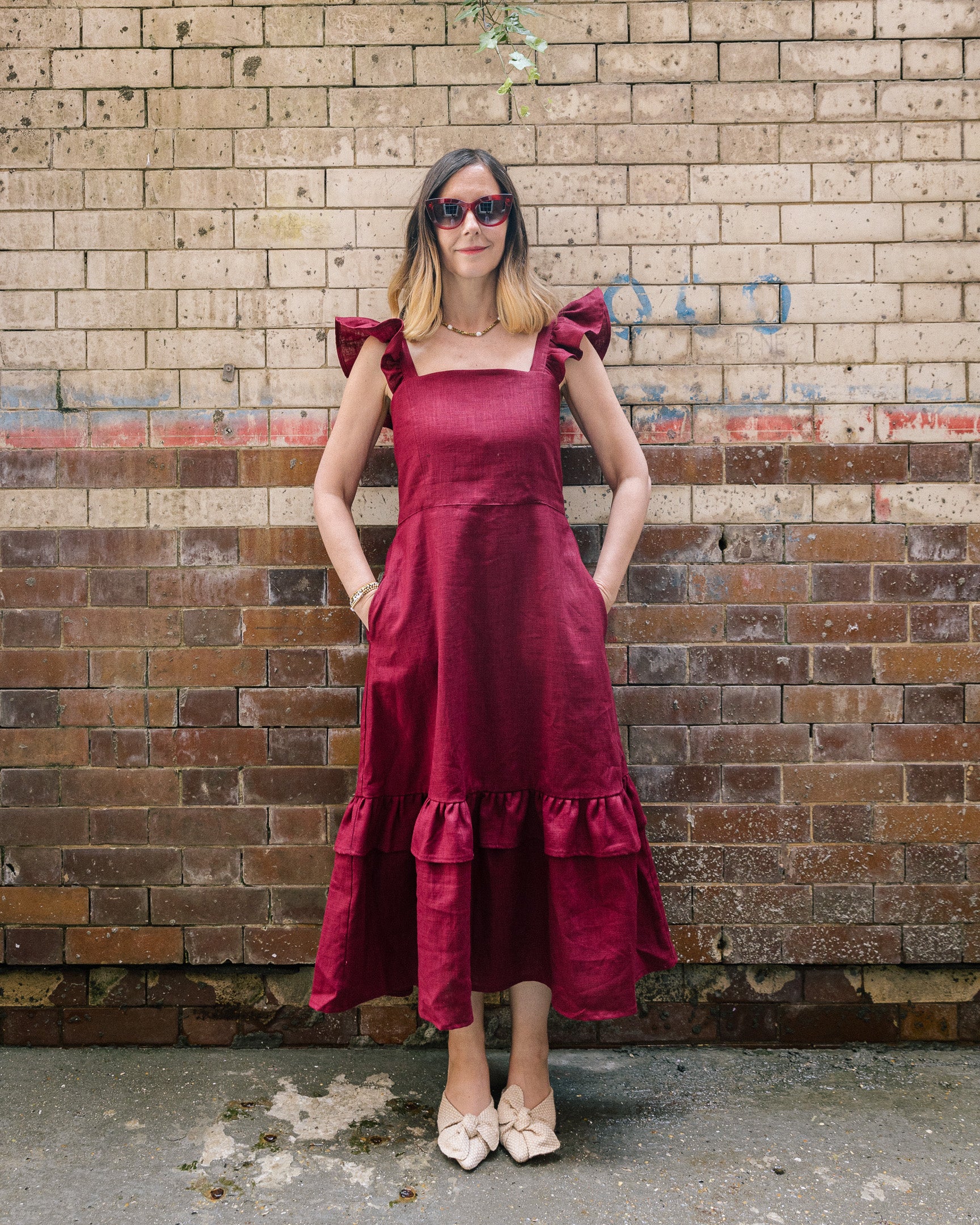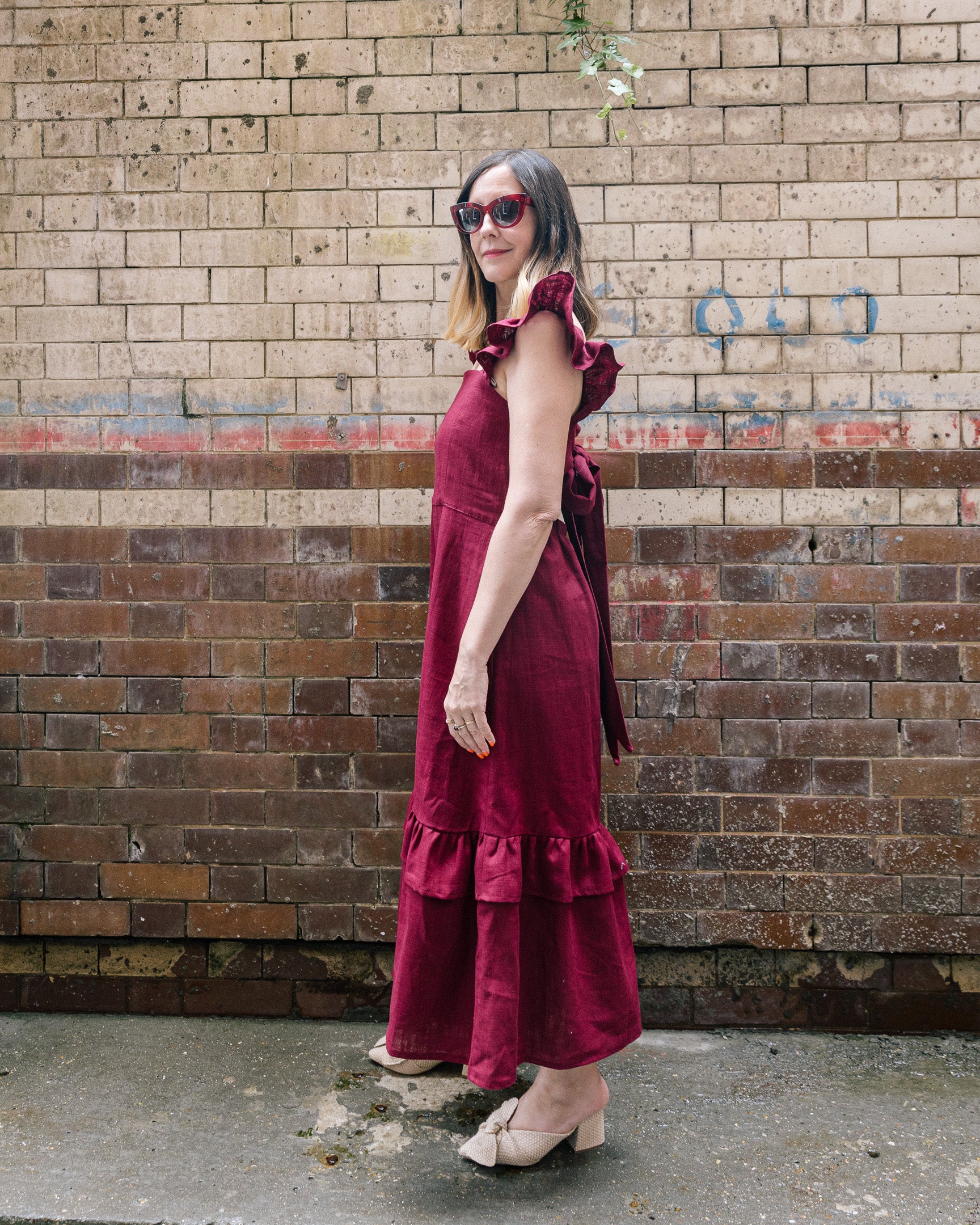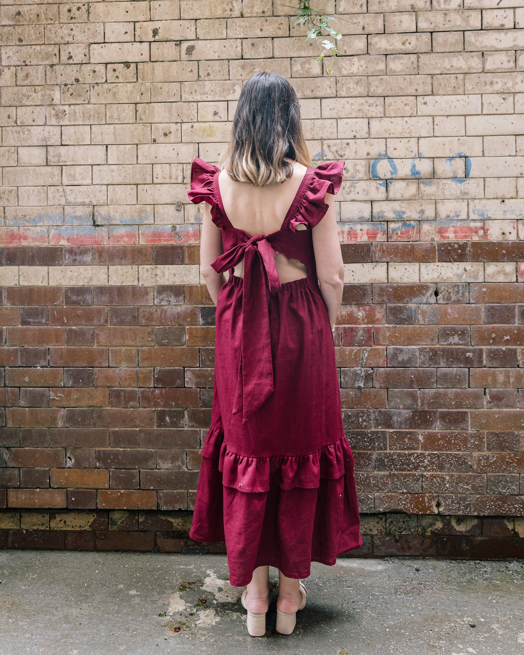 Burgundy Linen Matilda Dress