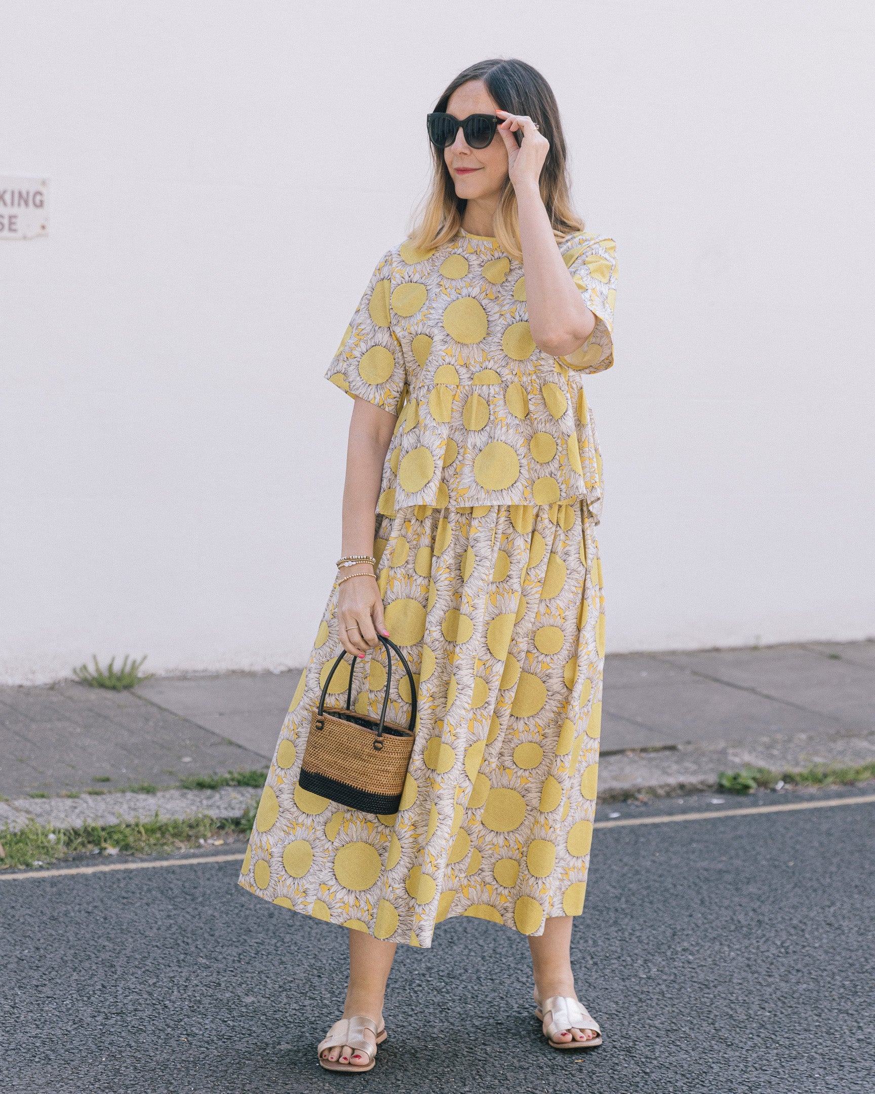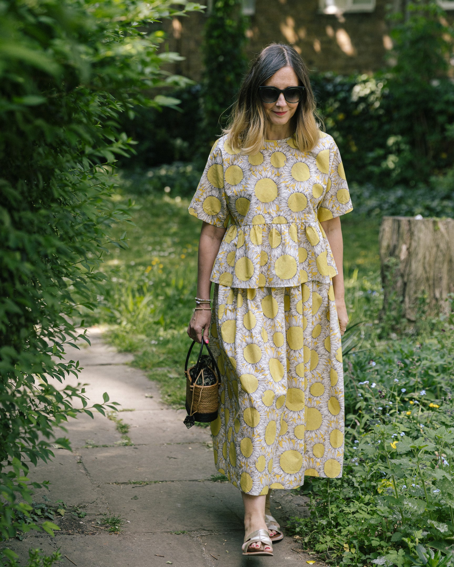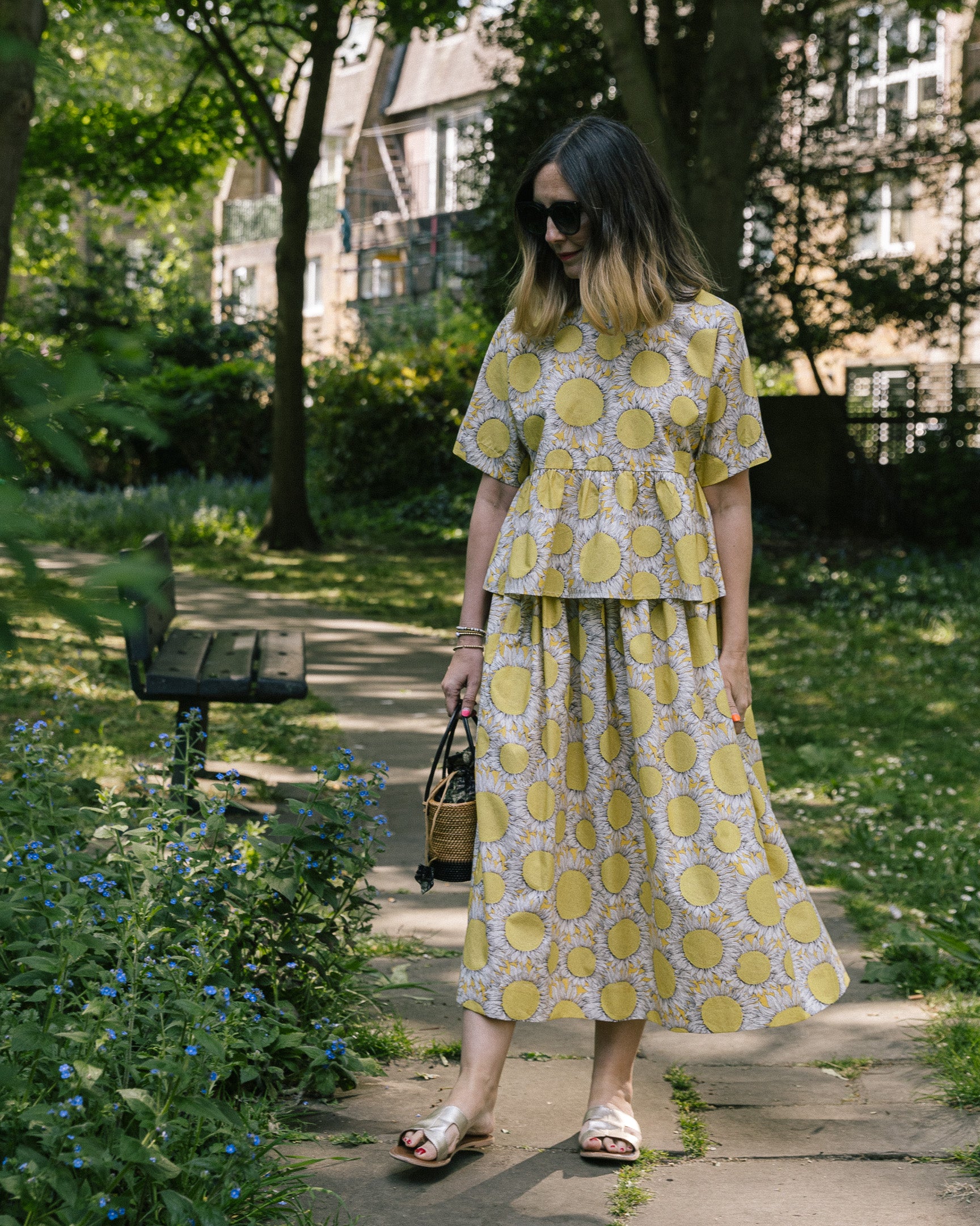 The Liberty Sunflower Tina Skirt by Elwin is a liberty print midi skirt, handmade in London from cotton poplin. Full and joyful, it’s a contemporary summer piece with an easy elasticated waist.