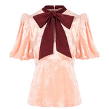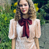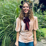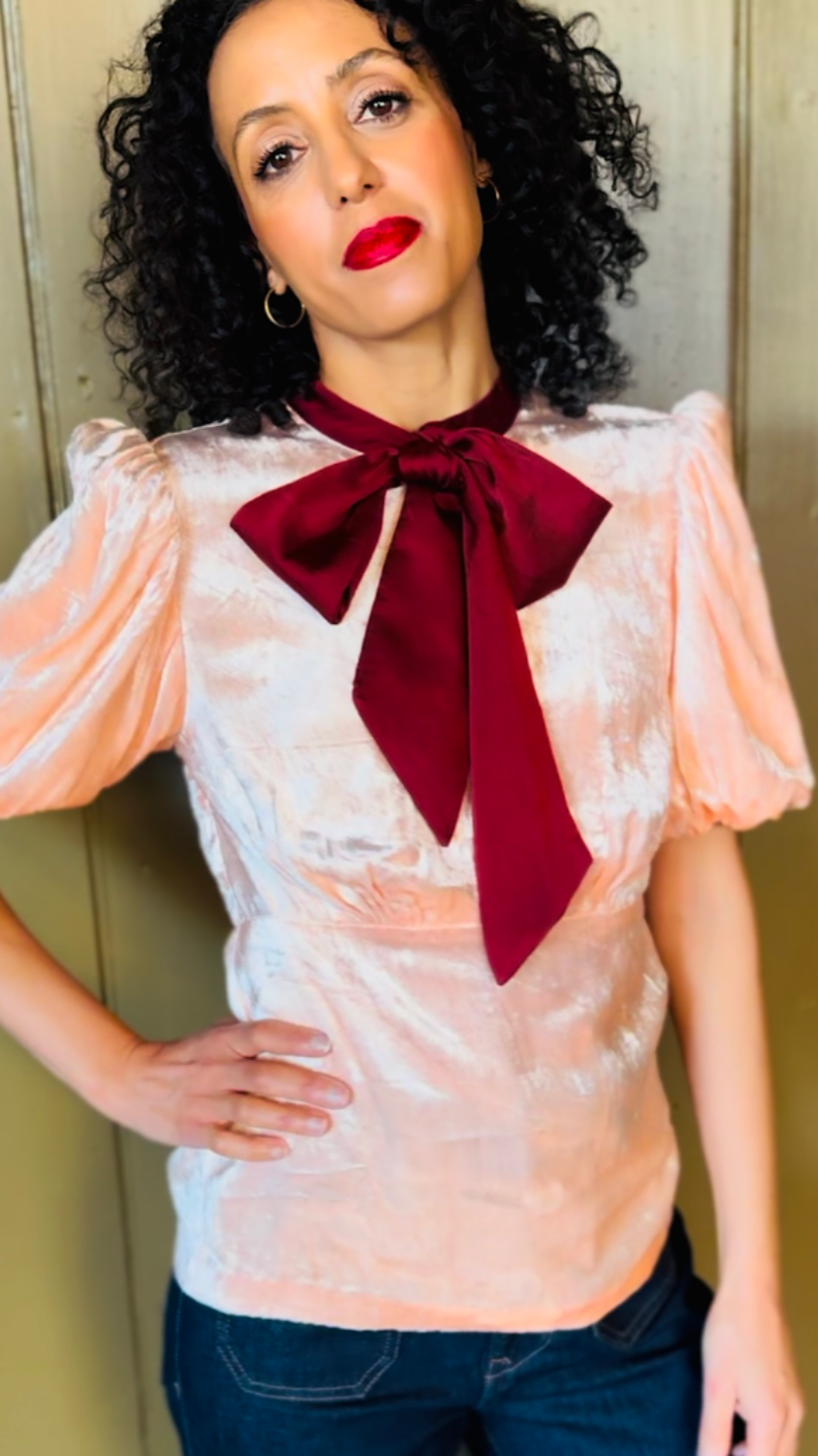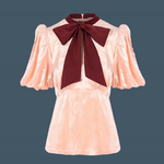 Sophie Blouse in Ballet Pink Velvet with Contrast Tie