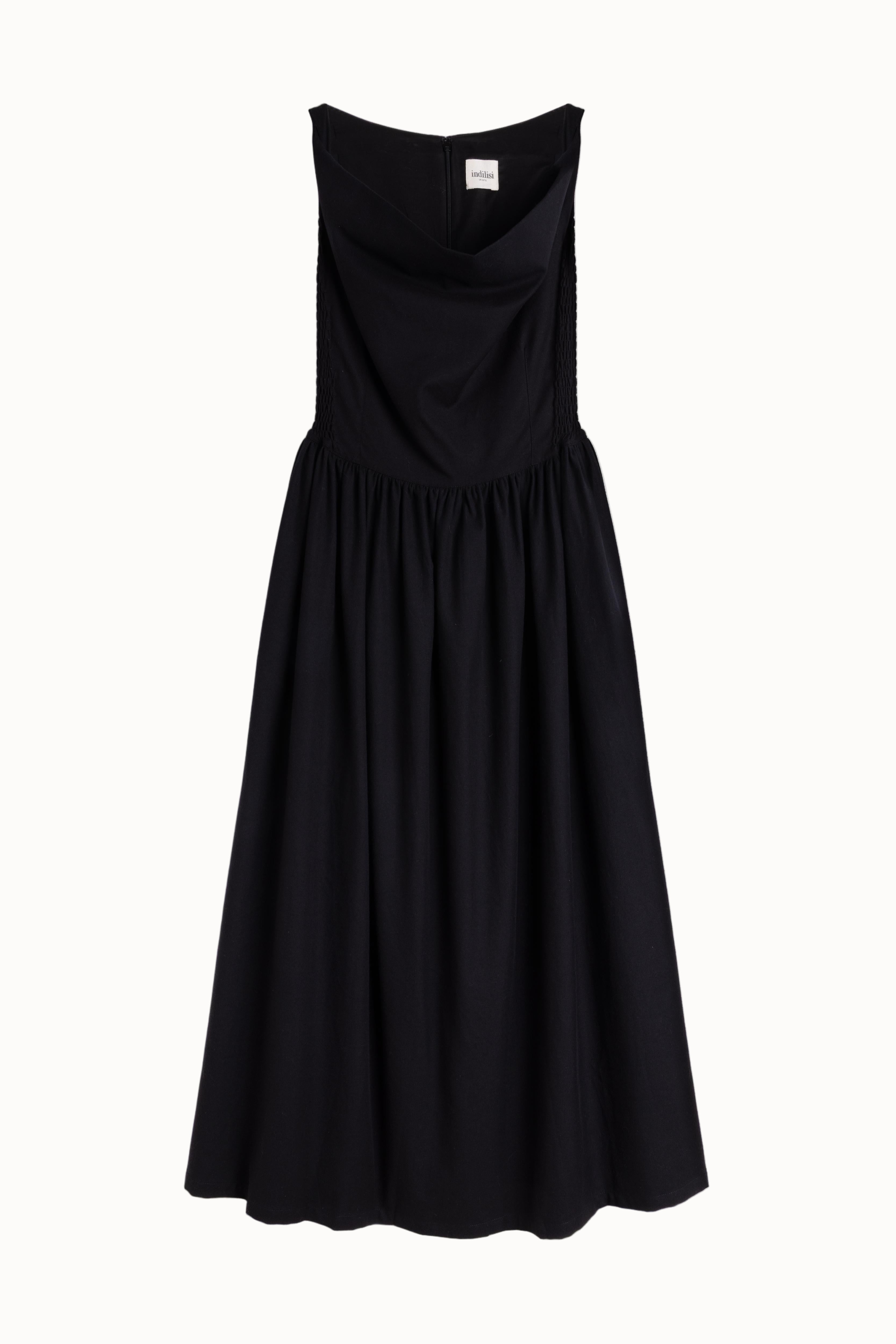 Celia Cowl Neck Maxi Dress in Black Twill by Indilisi